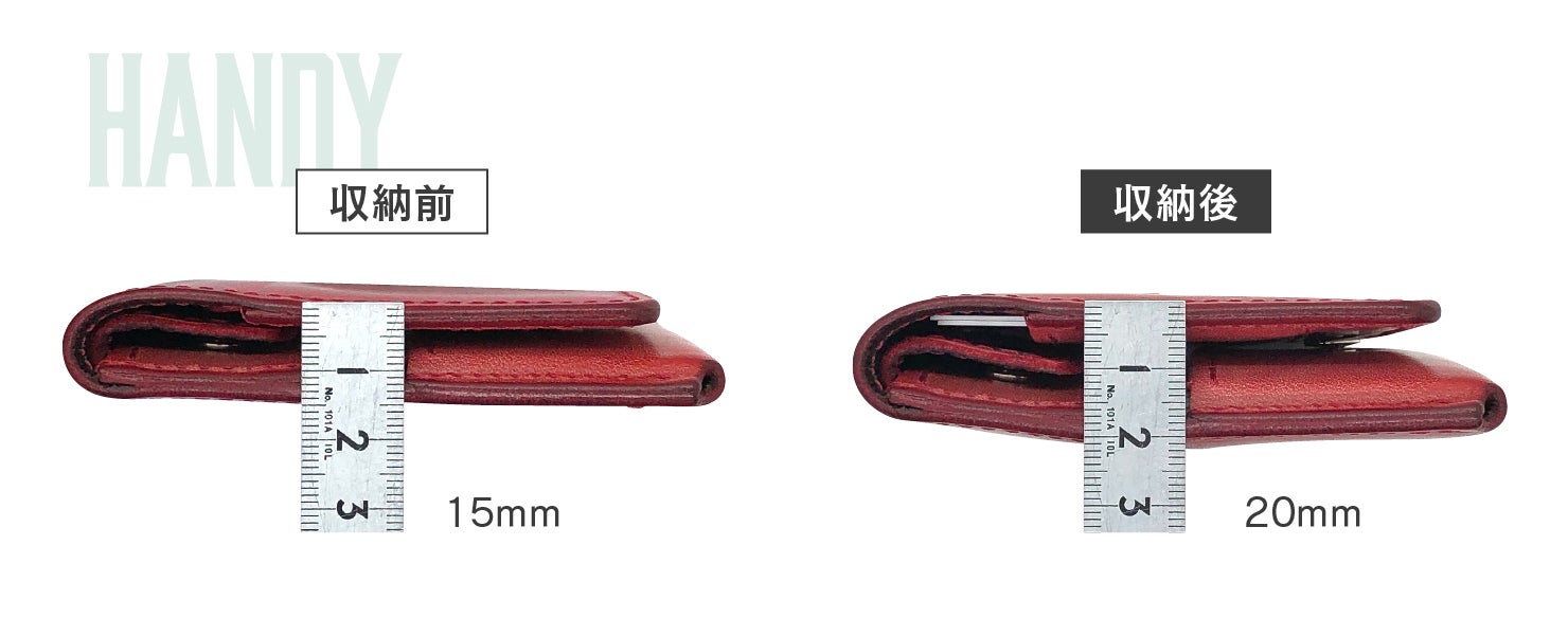 ●お財布を交換するということは、お金のお家を整理するきっかけもなります。整理すると意外と使っていないカードがある事に気が付きます。その際に7枚以内で収まりそうな方はこちらの薄型財布HANDYをお勧めいたします。