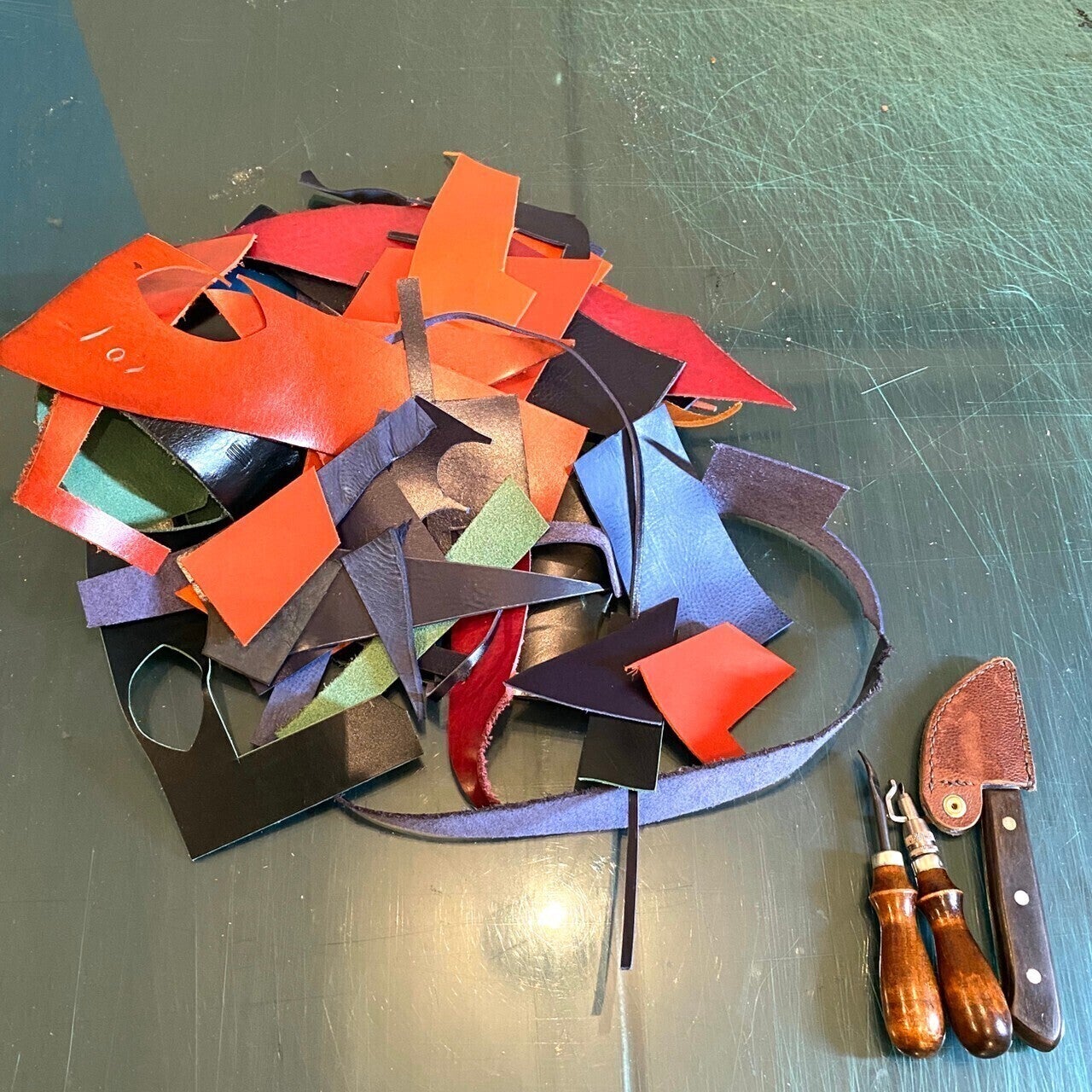 製作の際にどうしても端切れが出てしまいます。一般的には革のいい表情の部分のみを使い商品を製作し、端切れは商品にはならず廃棄となります。