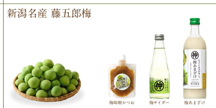 このような新しい取り組みの一貫として、醸造業の食品加工の技術を活かし、地元に貢献しようと新潟市の藤五郎梅の商品化に着手しました。