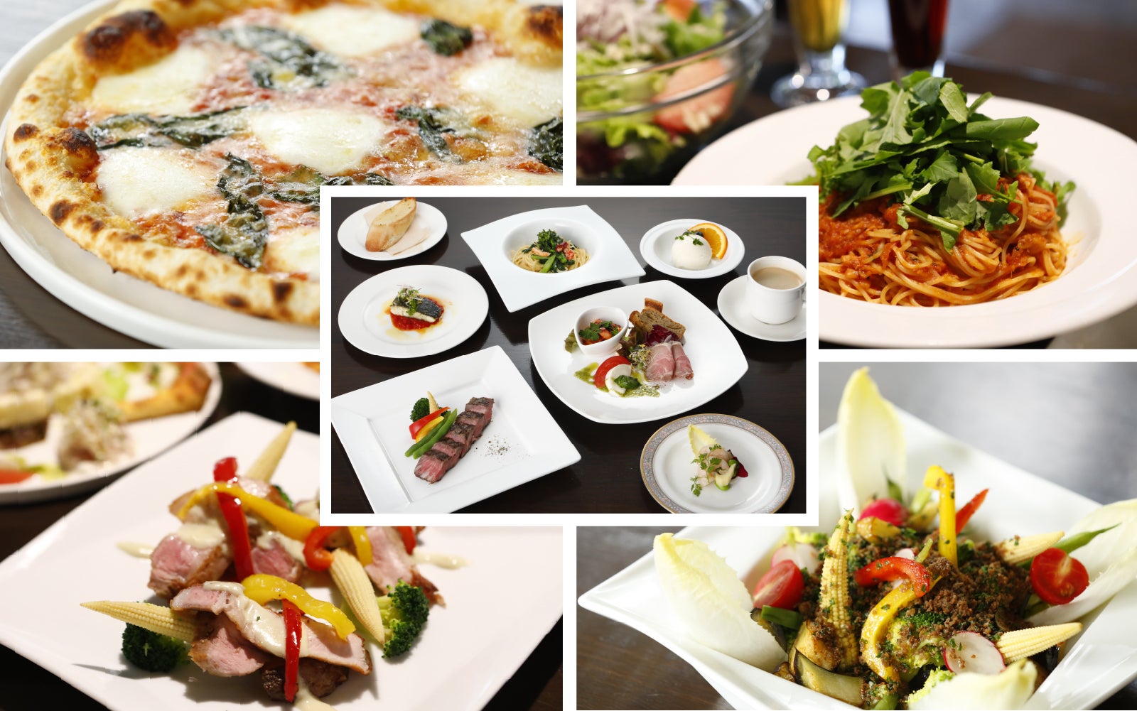 またコース料理(予約制)のご利用も可能。みんなそろってワイワイ楽しめる大皿パーティーコースや、本格的なイタリアンのコースをお楽しみいただけます。