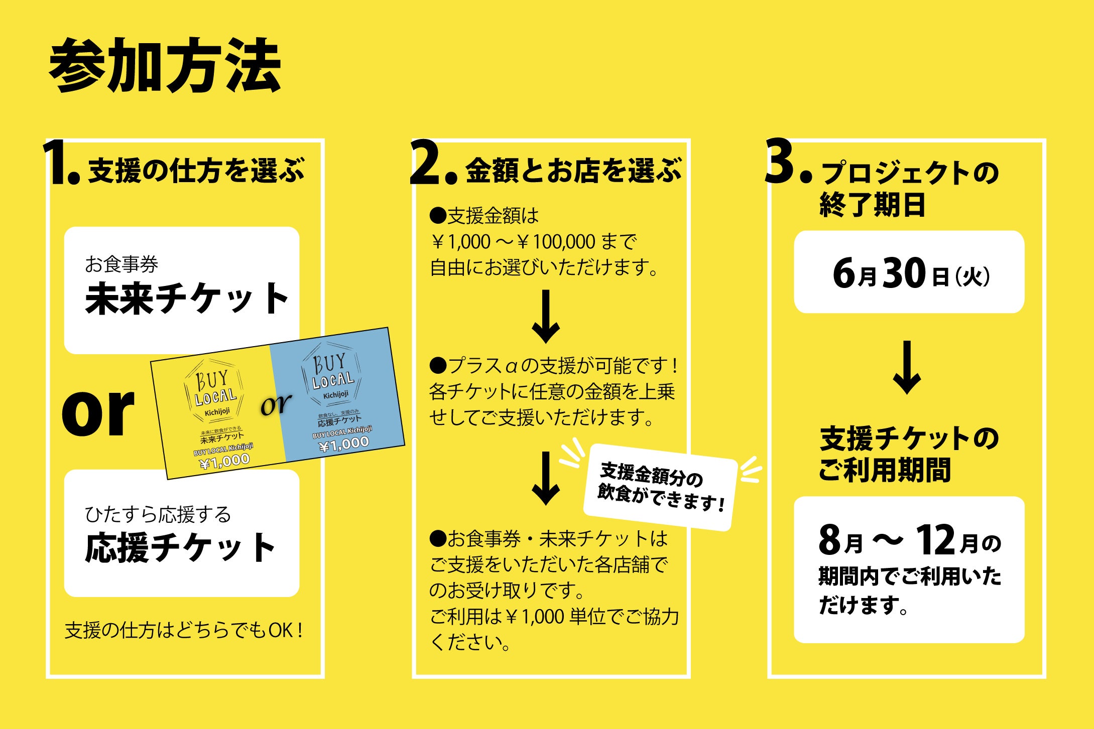 チケット製作費・郵送代・支援金振込手数料・その他BUY LOCAL Kichijojiとして必要と考えられる活動にあてさせていただきます。