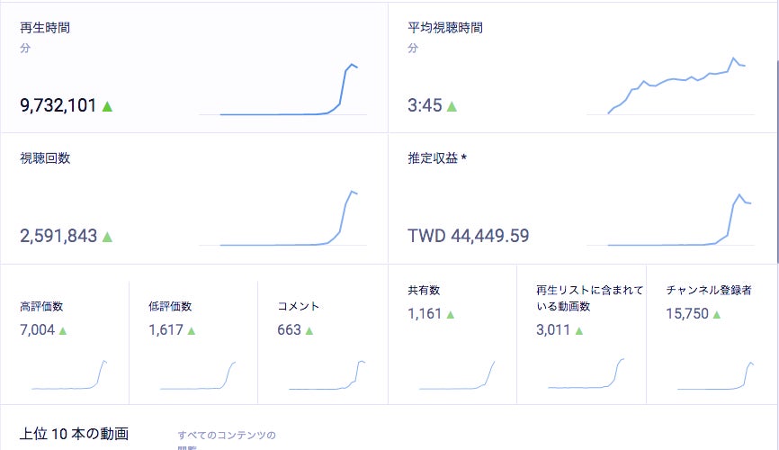 Youtube初めて26日くらい(上部二枚)並びに16日くらい(下部)の頃のデータ