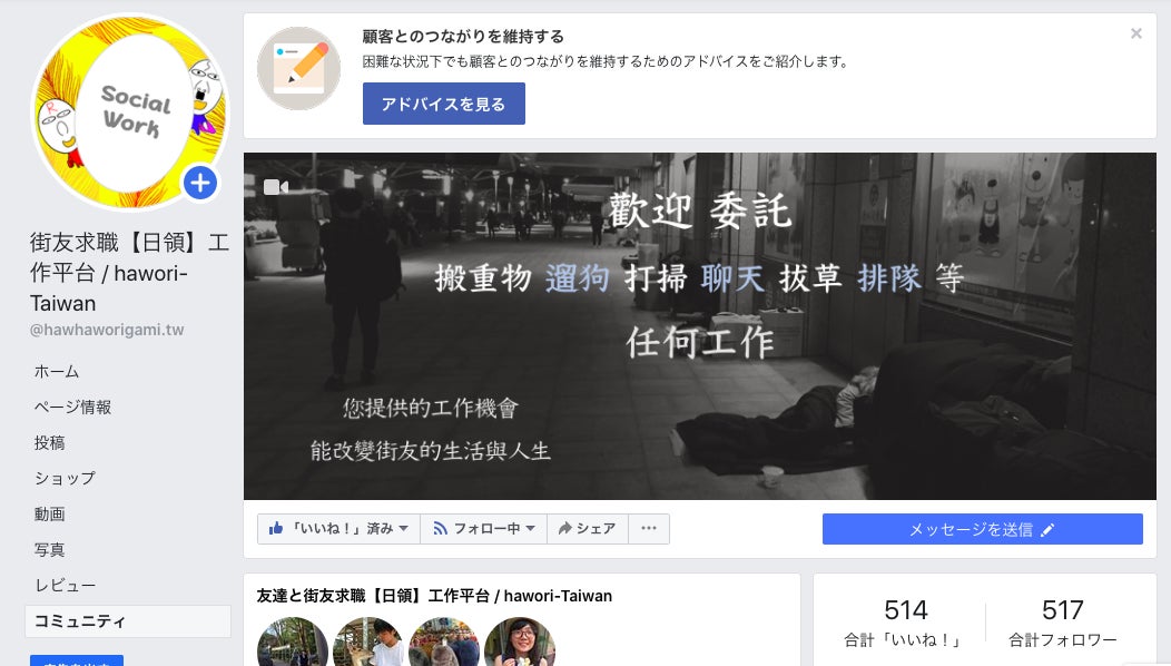 当時開設したFBページは現在更新していないが、今でも517名のフォロワーがいる。