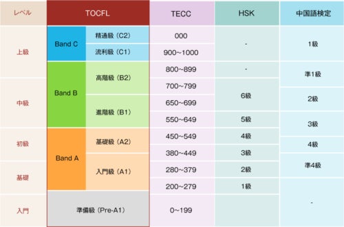 TOCFL&HSK比較対象表