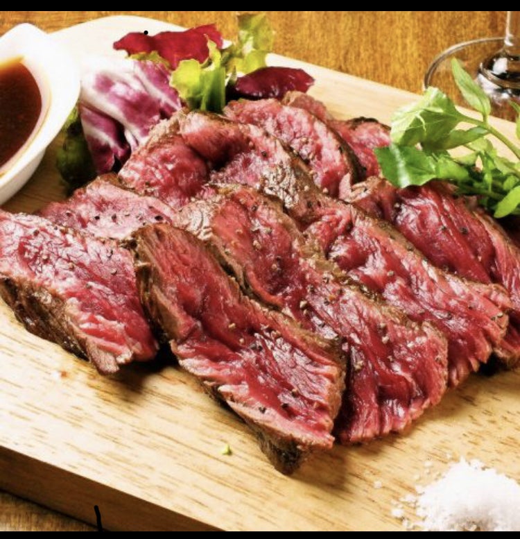 看板メニューの牛ハラミステーキは地元誌やテレビで何度も紹介されている自慢の一品。熟成させた鮮度の良い牛肉を使っており、ソースは料理人仕込みの⦅特製ケイジャンスパイスソース⦆を使用。脂身のある肉にポン酢の酸味が効いたあっさりとした仕上がりにしています。