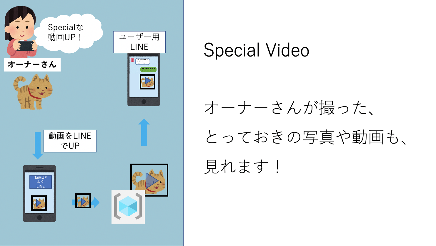 好きなタイミングで撮る写真も楽しいですが、オーナーが撮った動画が見れる機能もつけました!ご飯やおやつ、おもちゃと遊んでいる猫の動画もご覧いただけます