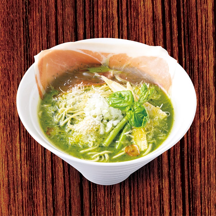 バジルの香りがさわやかで最初はさっぱりとしたスープが味わえます。次に下に溜まったチーズを麺によく絡めて食べると、濃厚なチーズ感がプラスされよりコクのあるジェノベーゼを味わうことができます