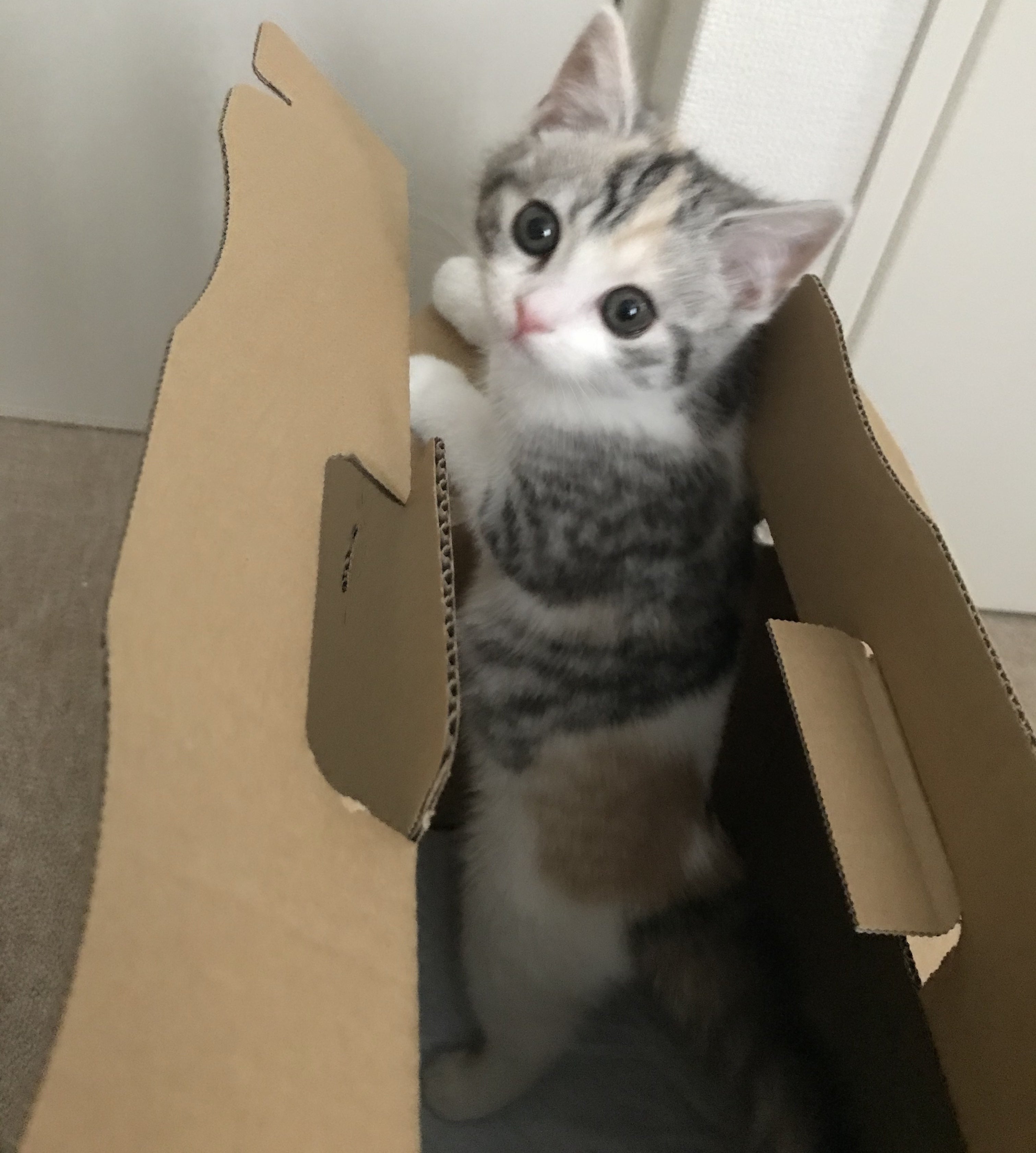 自宅に来て、早々に部屋の冒険を始め、誰も教えていないのに、階段の昇り降りもできて、この子すごいなって思いましたw(お姉さん猫たちは、階段を昇れても降りることが最初難しかったので…)