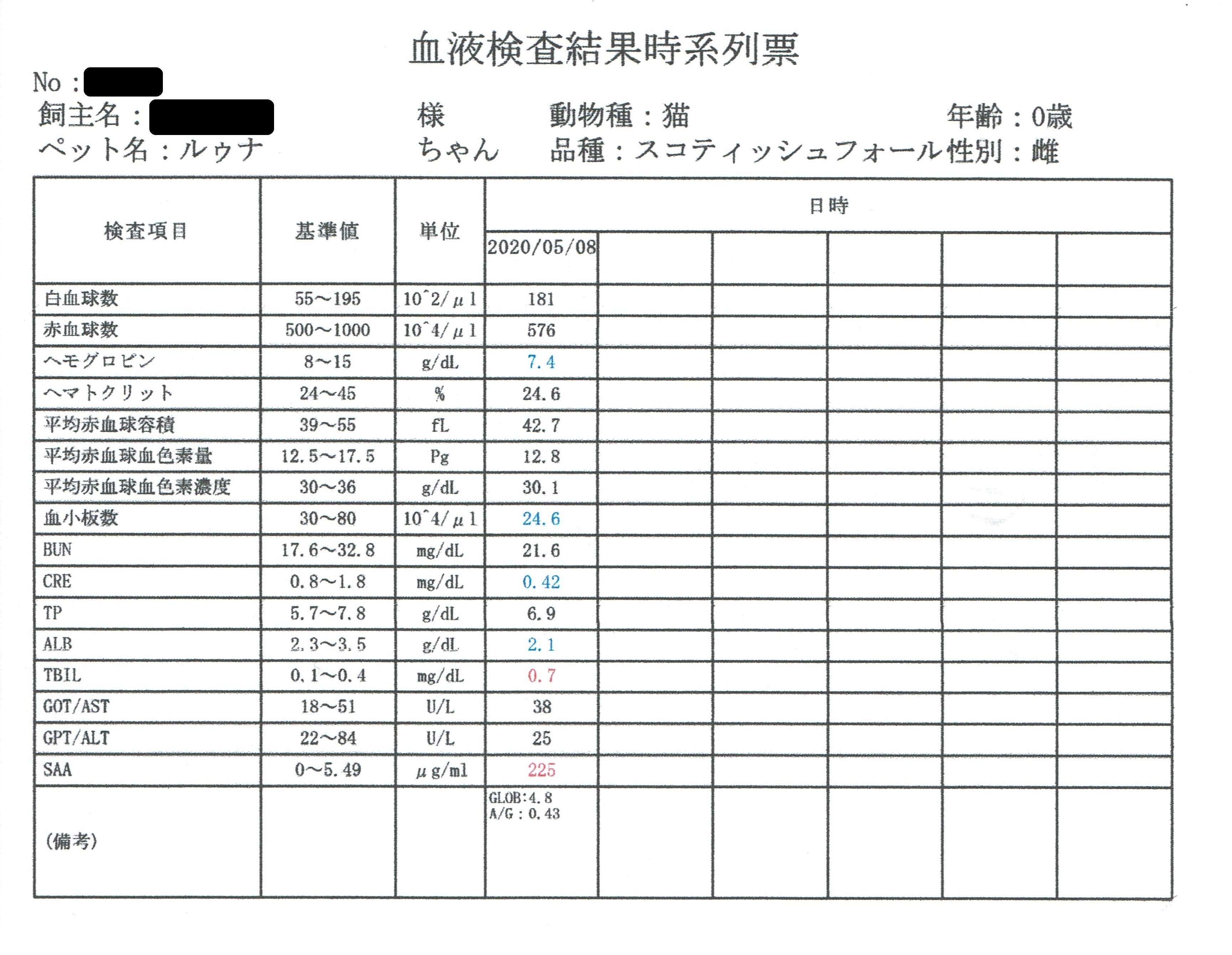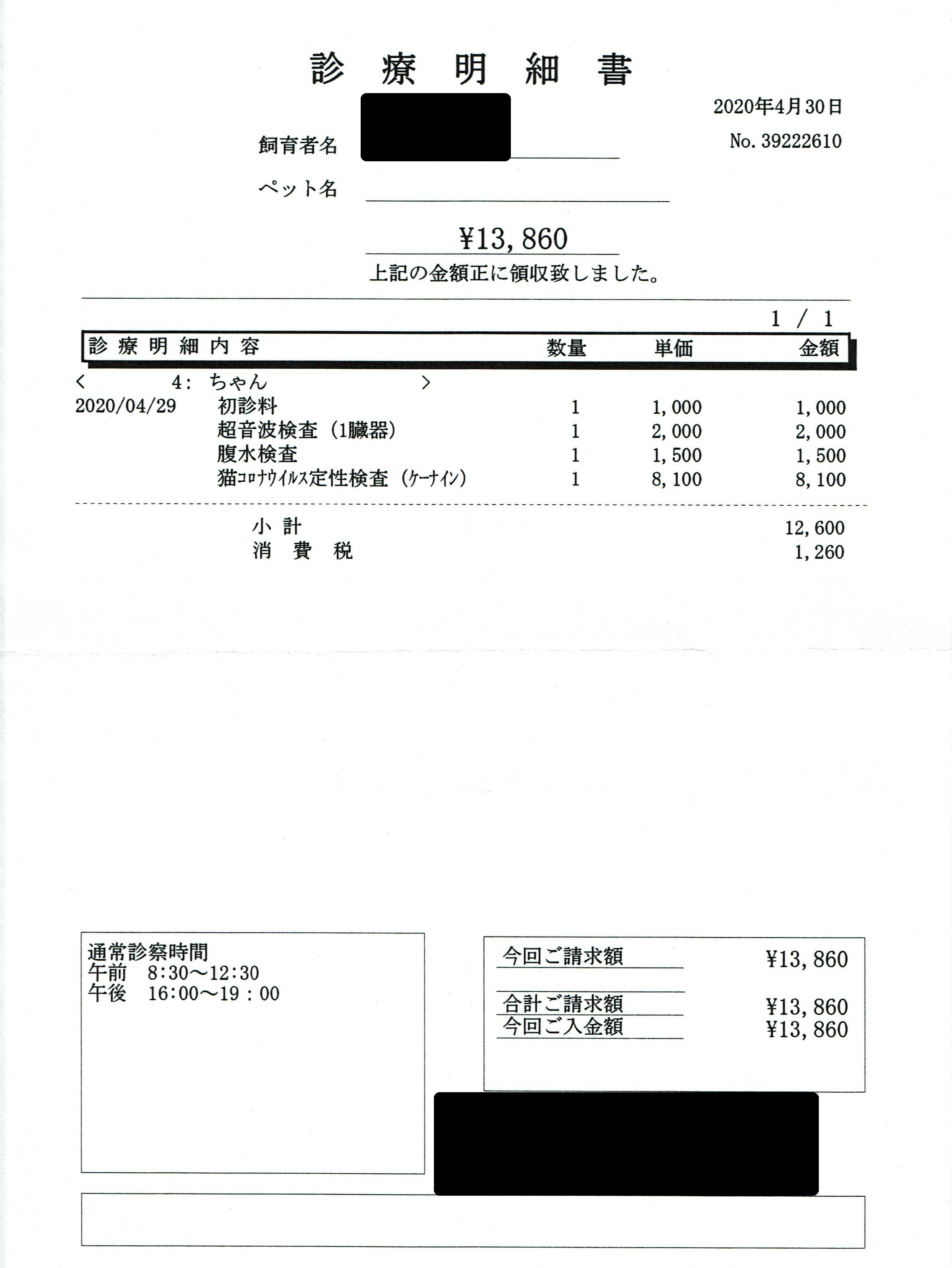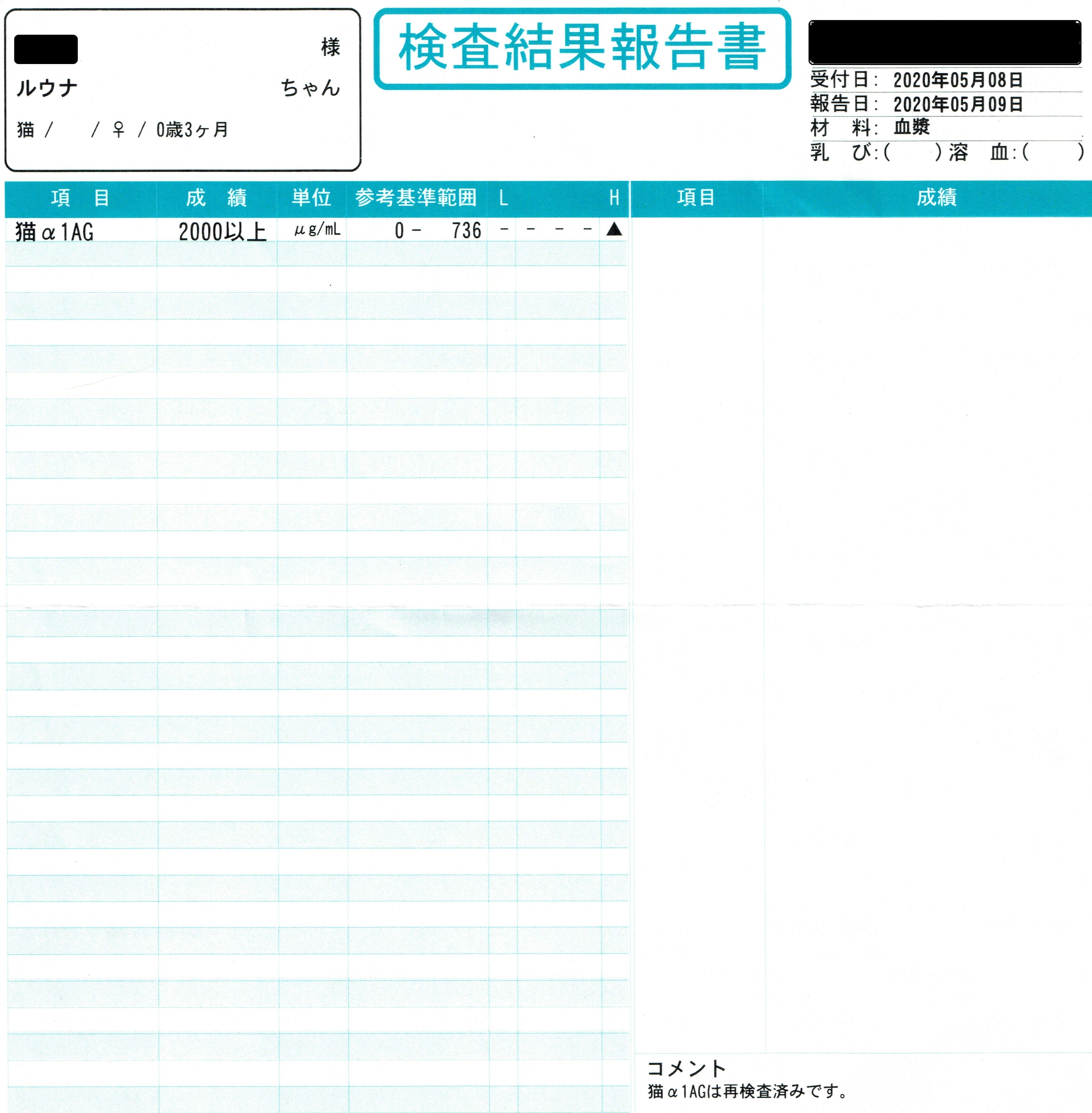 ちなみに陰性の場合は、FIPを完全に否定することはできず、他に原因がないか追加検査をしましょうと言われました。