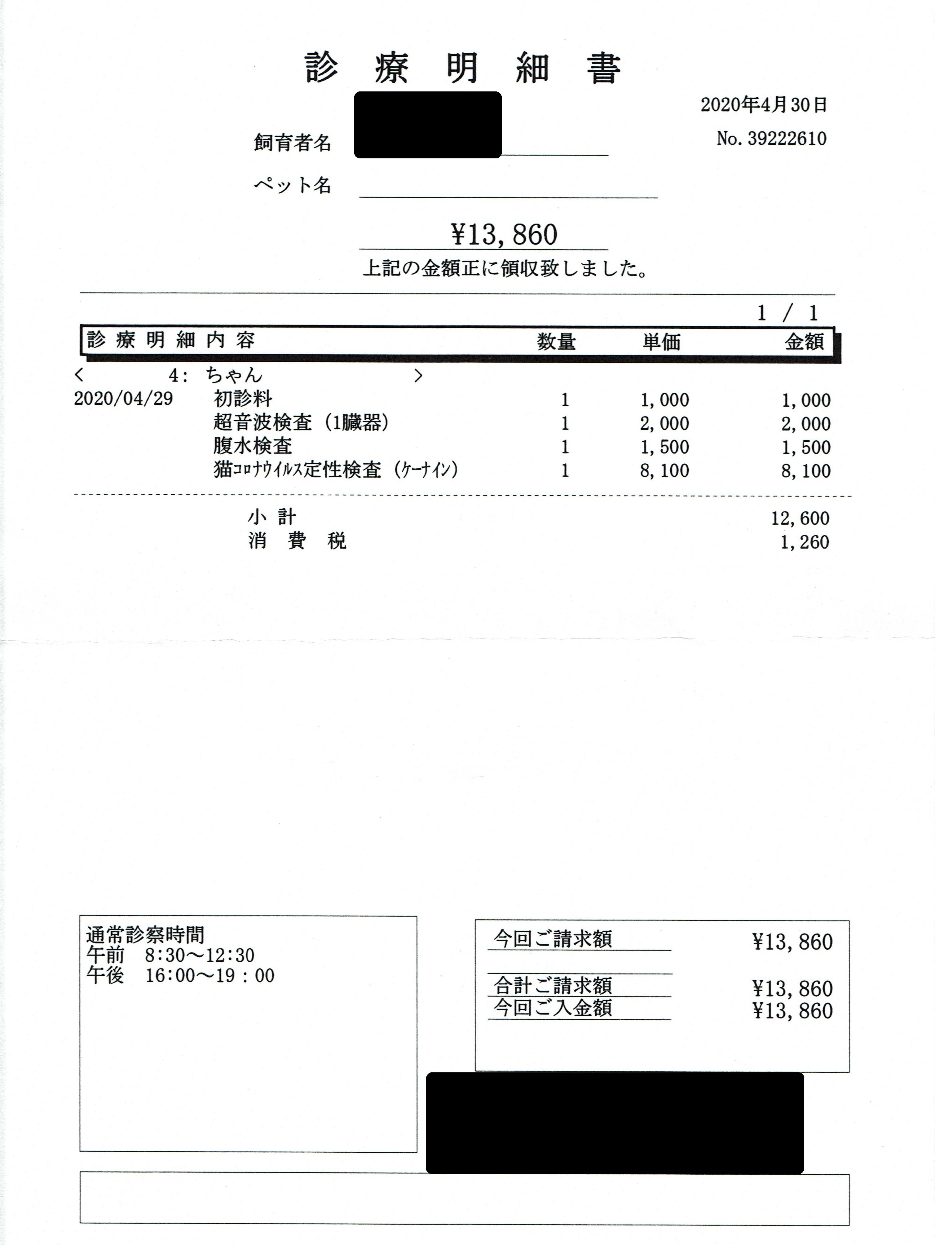 精密検査の結果、「FIP(ウェットタイプ)の初期」と診断されました。