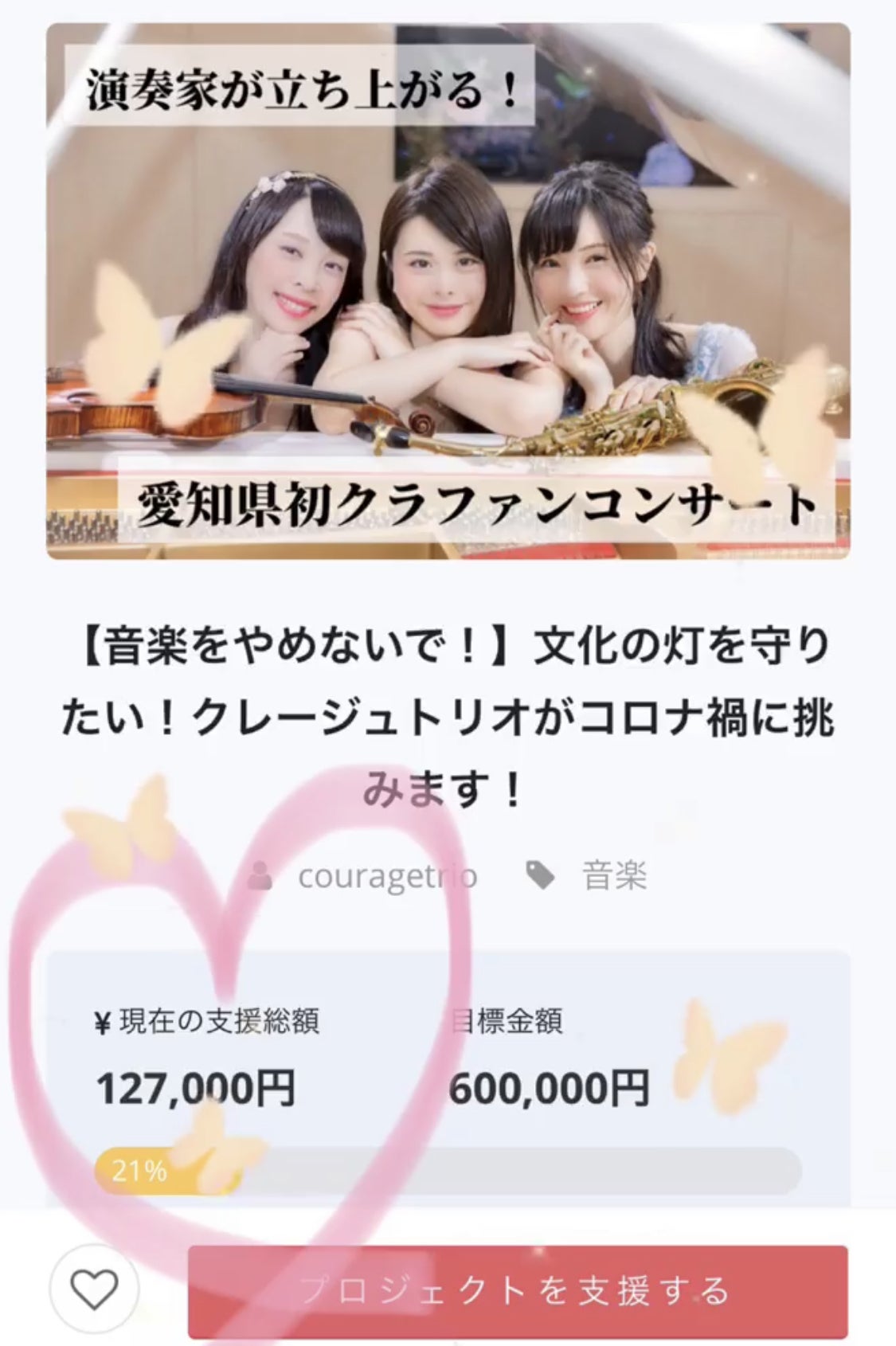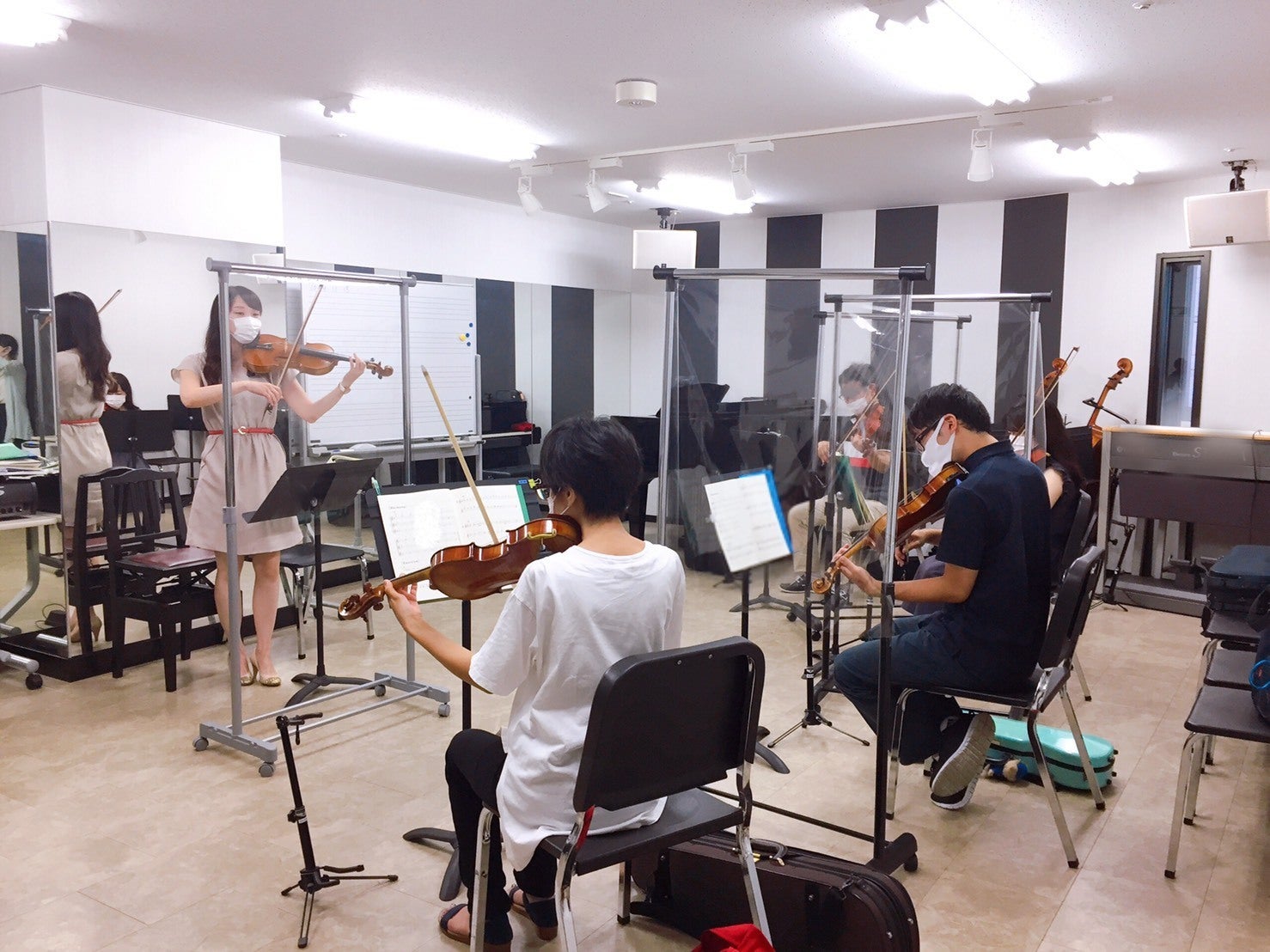 「まずは、この業界のことを知ってほしい」という想いで始めたこのクラウドファンディングも、早いもので残り一週間を切りました!本取り組みについて、おかげさまで中日新聞社様にも取り上げていただき、まだ期間は終了していませんがこのプロジェクトを立ち上げて本当によかったと思っています。今日は、この場をお借りして、期限一杯1人でも多くの方にこの業界のことを知っていただくべく、 コロナ禍にある音楽業界のことを更にご紹介させてください。今日のお話は演奏家ではなく、楽器レッスン講師の立場からです。この写真をご覧になって、一番はじめに思ったことはどのようなことでしょうか。私が稼働している某音楽教室のレッスン風景です。緊急事態宣言が解除されやっと教室が再開し、久しぶりにレッスンに行きこの感染対策の重装備を見た時は、正直ショックを受けました。「あぁ、これからはここまでしなければならない世の中に変わってしまったんだ」と。生徒様のマスクをしていない素顔を見ることが出来なくなってしまったことも、直接お会いしているのにパーテーション越しにしかコミュニケーションを取ることができなくなってしまったことも、とてもショックでした。具体的にどのような感染対策がなされ、コロナ以前とどのように変わったのかをあげたいと思います。まず、講師はパーテーション越しに指導をする為、以前のように生徒さんの楽譜への書き込みや、近くへ行っての指導は一切できなくなりました。そして、こちらの音楽教室は本来は楽器を持って来なくても手ぶらでレッスンへお越しいただけることを謳っておりましたが、感染予防の為に必ずマイ楽器をご持参いただくこととなりました。写真をご覧いただくと、皆様楽器ケースを椅子の横へ置いているのでお分かりいただけると思います。そして、これが一番大きく変わったことなのですが、唯一講師と生徒様が接触しなければならない「チューニング」問題に関してです。これを非接触で行わなければならないと決まった時にはどうしようかと、とくに初心者のクラスでは気を揉みました。が、 生徒様に事情を説明して、根気よく、丁寧に指導してみたところ、パーテーション越しでも生徒様にチューニング技術を習得していただくことができ、非接触でのチューニング指導へと大きく変わりました。このことにより、今は私と生徒様が直で接触する瞬間は完全にゼロになりました。最後に、この生徒様お一人お一人、そして講師を遮るためのパーテーションですが、毎日毎日、教室スタッフが新しいシートに取り替えてくれています。一日置きではありません。毎日です。これについては教室スタッフへの感謝がとまりません。写真では分かりにくいかも知れませんが、それぞれ、5人のクラス、4人のクラス、3人のクラス、そして写真にはありませんが2人のクラスもこれと同様にあります。もちろん生徒様全員に写真掲載の許可をとっており、そして皆様口々に「音楽を楽しむ姿を知ってもらえるなら、テレビでも新聞でも、どこへでも出して欲しい、協力したい」と仰ってくれています。私の個人的なお話になりますが、私はレッスンが大好きな人間です。生徒様から音楽のこと、世の中のこと、人としての思いやりや愛情とは何かを教えていただいています。緊急事態宣言が解除されて、レッスンが再開した時、ご不安から退会者が続出してしまうのではないかと心配をしましたが、お教室の素晴らしいスタッフのお陰で、日曜日は常時25人程の在籍がありますが、なんと1人の退会者もなく全員レッスンに戻って来てくれました。そして、レッスンを心から楽しみにして、音楽に触れていたいという生徒様が多数いらっしゃるという事実に胸が熱くなりました。こんなにも、こんなにも、まるで生き甲斐のようにしてレッスンを楽しみにしてくれていたのだと、講師である私が一番勇気付けられた瞬間でもありました。音楽業界のために、この衝撃的なレッスン風景写真もどんどん広まればと思っています。全ての音楽教室、もしくは個人のお教室でも、コロナ禍でこれからもレッスンを継続しても良いのか悩んでいる所は沢山あると思います。でもこうして、ここまでしても多数の生徒様がレッスンを楽しんでいる様子を知ってもらうことで、前向きな想いが生まれると思うのです。大変不慣れながらも現在クラウドファンディングをしているのも、「まずは、この業界のことを知ってほしい」という強い想いからです。私たちの想いを多くの方に知っていただくことで、演奏家へエールを届けたいと思っています。残りの期間も、精一杯頑張りたいと思いますので見守っていただけましたら幸いです。