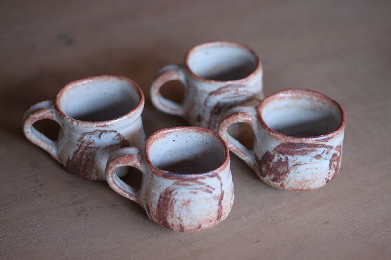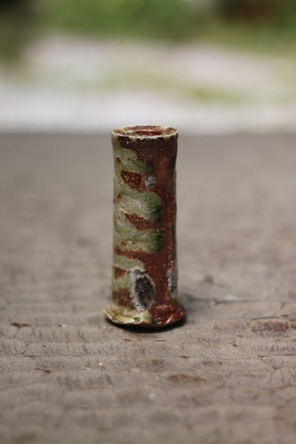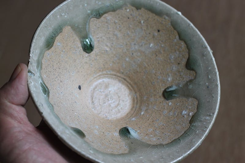 久喜の名産の梨の木の剪定で出た枝を燃やしてできた灰を長石に混ぜて釉薬とします。灰の中に含まれる微量な鉄分の作用で薄い緑色が出てまいります。