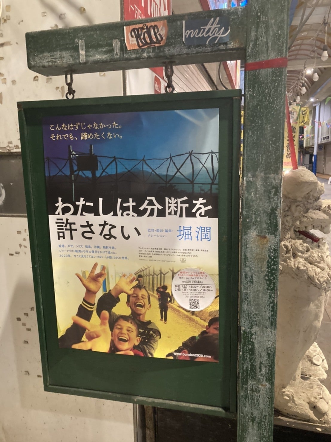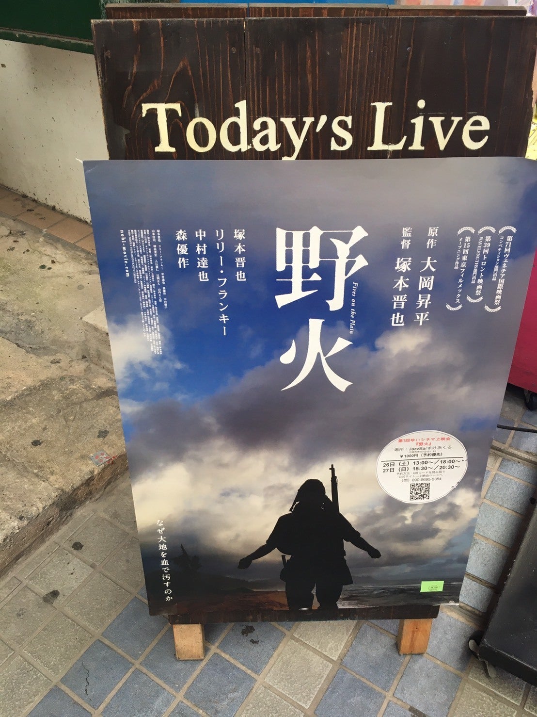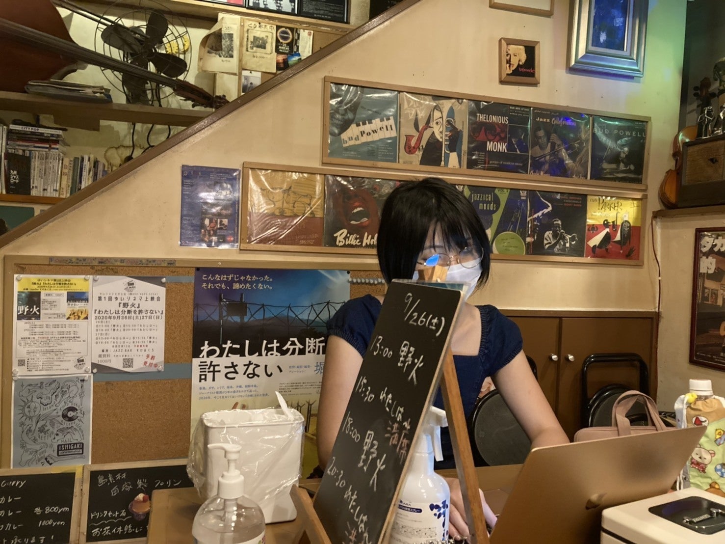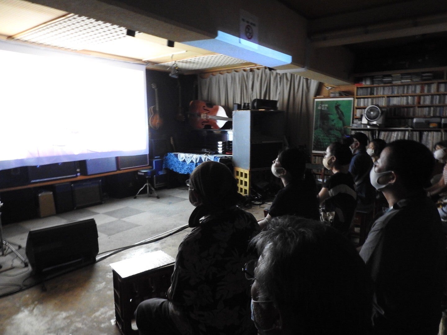 記念すべき第1回目の作品は、ゆいロードシアター時代に上映のお約束をさせていただいていた『野火』と『わたしは分断を許さない』。会場は、石垣島を代表する老舗JAZZ BARすけあくろをお借りしました。やはりコロナ禍でたくさんのライブの予定が白紙になってしまったそうですが、八重山のミュージシャンを中心に配信ライブを積極的に行っていらっしゃいます。