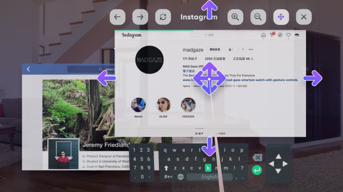仮想マルチ画面を実現するアプリケーションです。GLOWに接続されたスマートフォンは、ナビゲーション用のレーザーポインターとして機能し、マルチウィンドウモードでのヘッドトラッキングをサポートします。