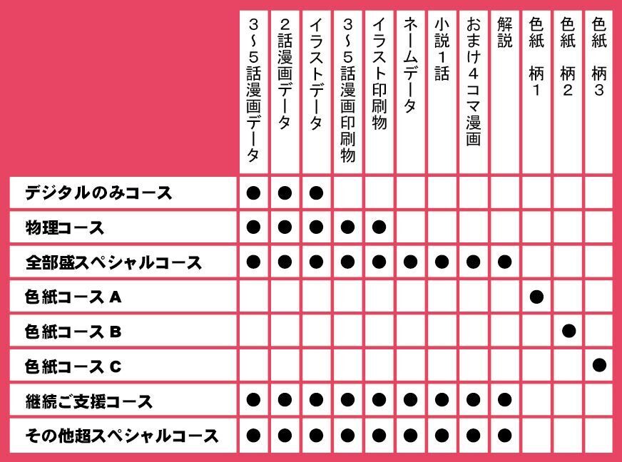 ※2話未読の方のために、一部コース以外は2話のデータがついています。