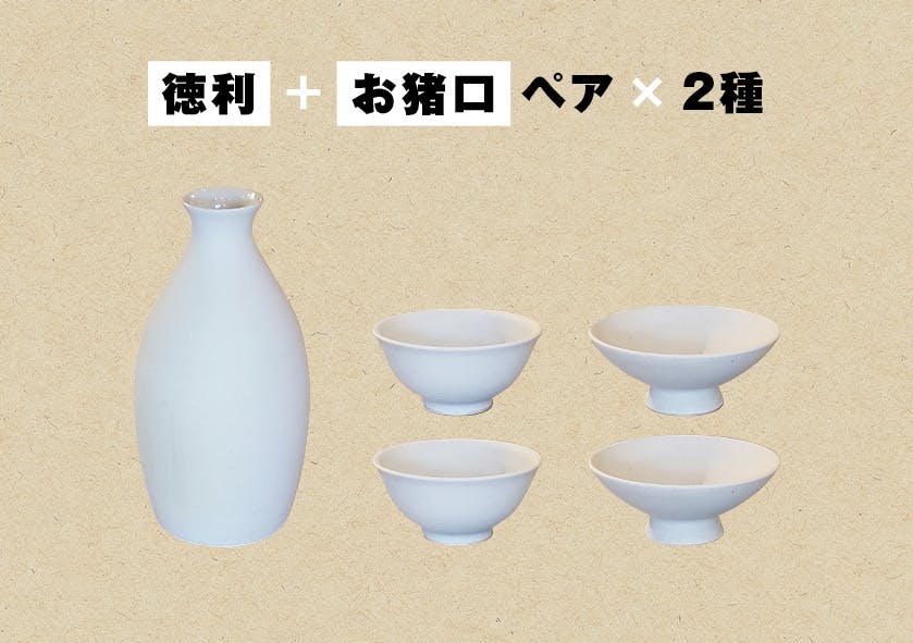 ▪️【福島県・大堀相馬焼2合徳利+お猪口2種セットペア+杯台ペア+お燗券1杯 or 送料+ステッカー2種】