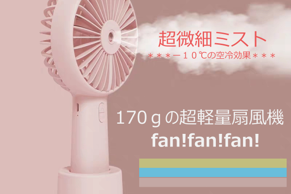 私たちのfan!は、「静かに」「軽く」「風量を強く」この今までの課題に対しての解決はもちろん、加えて「心地よいミスト」を追加して、暑い夏のクールなお供になってくれることでしょう。
