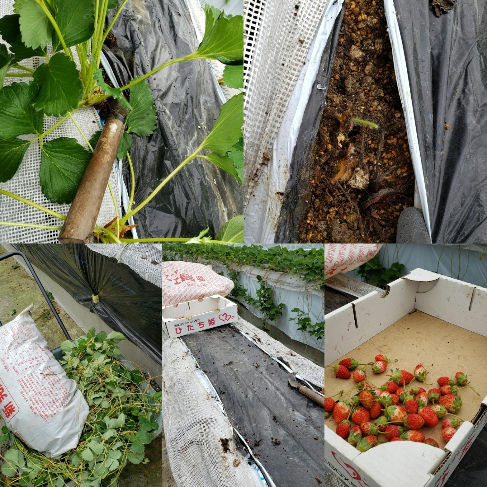 昨日からいちご狩り用のビニールハウスにて苗の刈取り作業を始めました。
