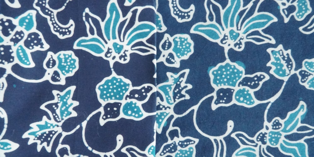 バティックとは日本語では「ろうけつ染め」と言われる、溶かした蝋を使って模様を描き、その上から染色して模様を作る染色方法です。