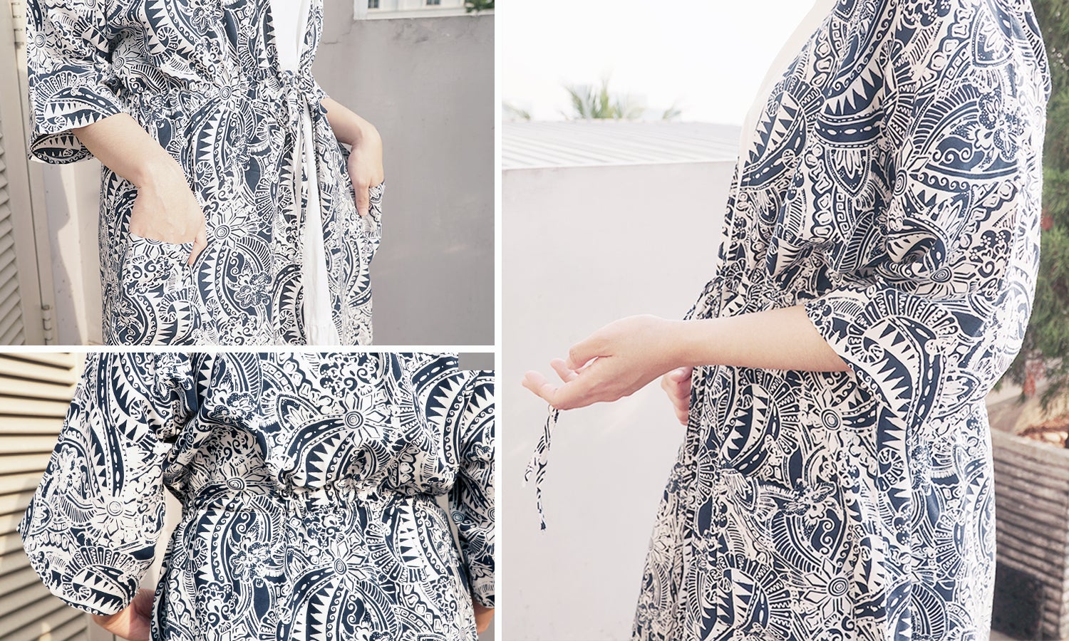 落ち感のある柔らかい素材で着心地も良く、バティックの優しい風合いで温かみがあります。