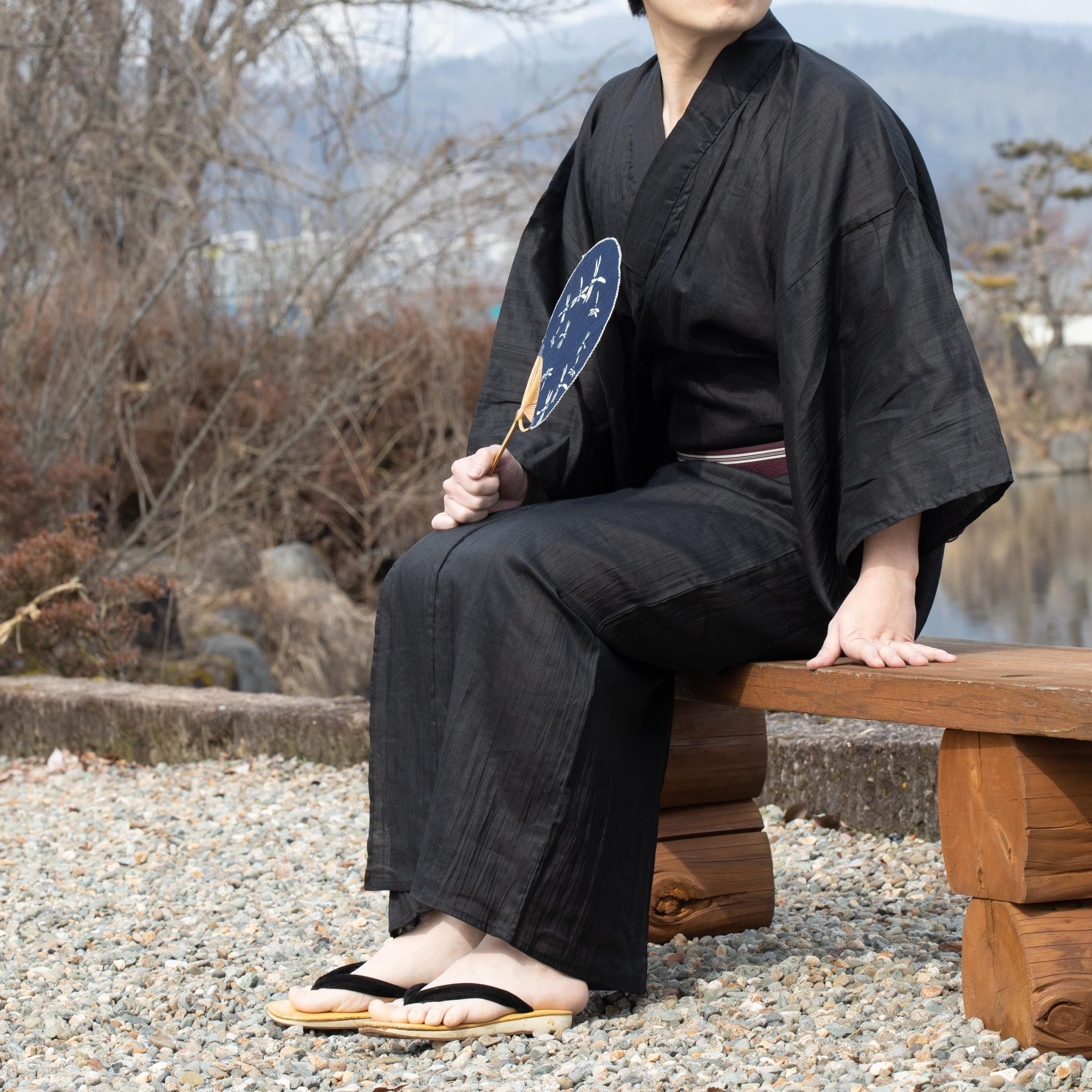 大人には上質素材のシックな甚平がよく似合います。