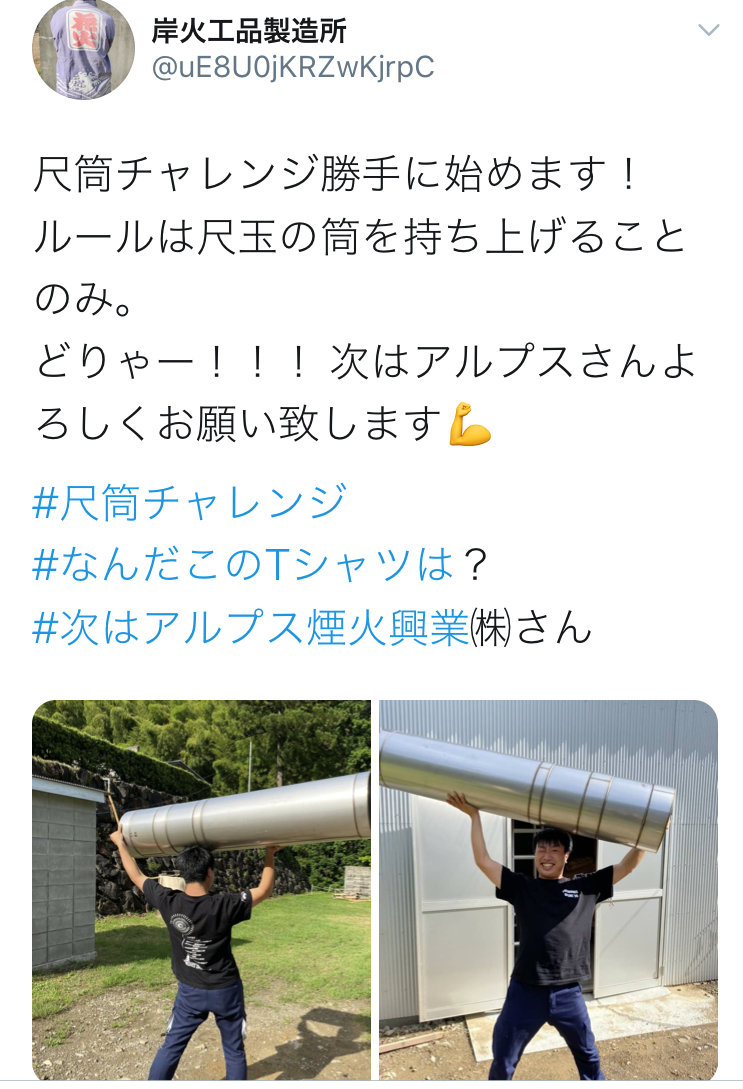2020/06/27 12:18花火師さん達による、「 #尺筒チャレンジ 」 が行われています!僕たちもバトンが回されていくのを楽しみに見いてますw花火師さん達は、感動を与える作品を創り出すアーティストであって人を喜ばせる事が好きな人達なんだなって思います!こうした普段見えないところから人柄なんかも見えてくる気がして、さらに花火と花火師さんを好きになってきましたwぜひ皆さんもチェックしてみてくださいね! もっと見る
