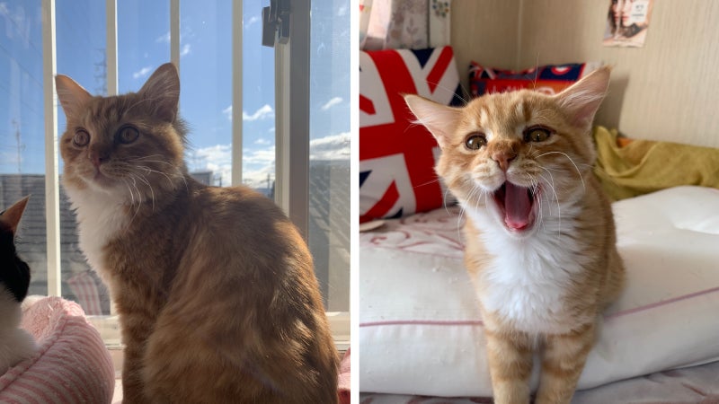 みなさまに応援いただいた子ねこの茶々も元気です!今ではすっかり脚もよくなり階段でもどこでも、力いっぱい走り回っています。しっぽだけはマヒが残りましたが、本人はまったく気にしていません。毎日元気そのもの、他の子のおもちゃも独り占めして(笑)幸せに過ごしています!