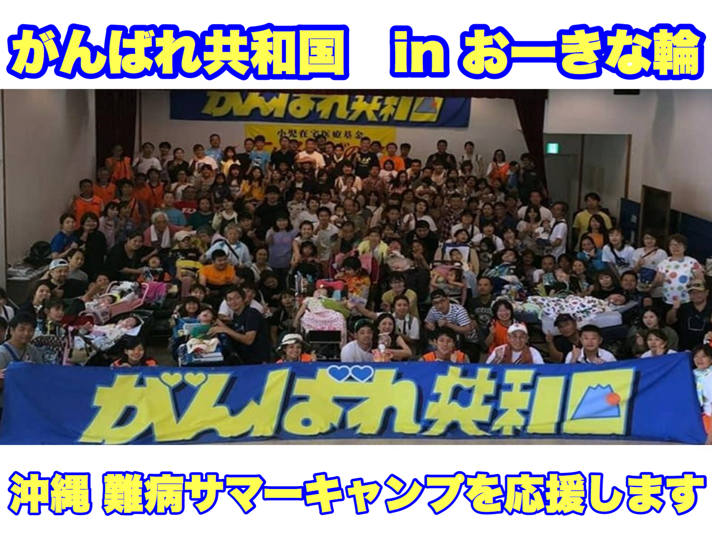 サマーキャンプ"がんばれ共和国"は、難病や障害のある子どもたちとその家族を対象として「友だちつくろう」を合い言葉に毎年開催されています。