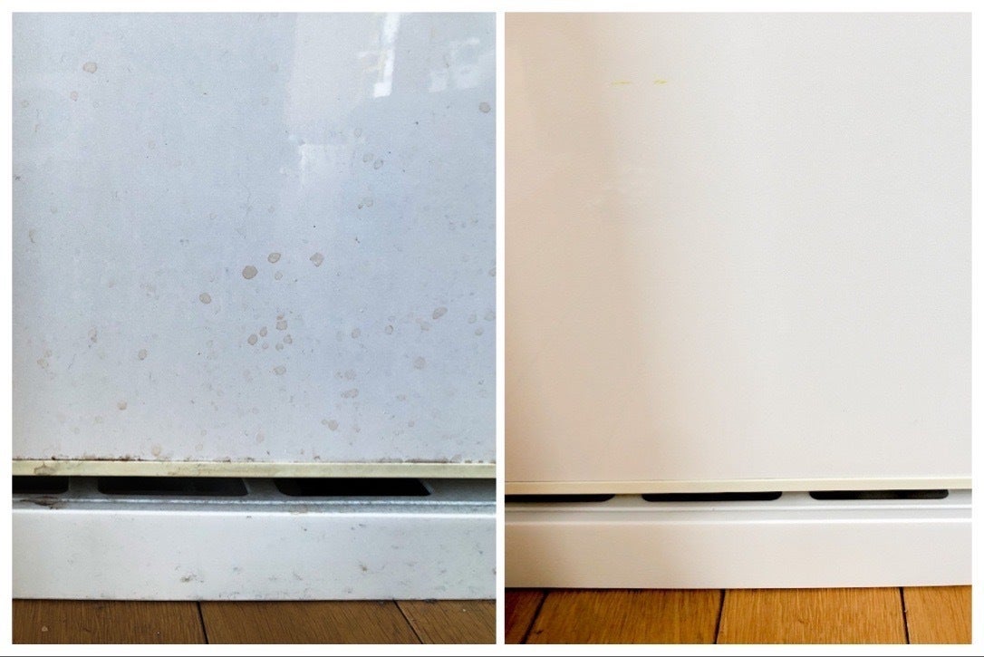 A. 拭き取るだけでは洗剤の後が白く残ります。水で流した後に拭き取ってください。