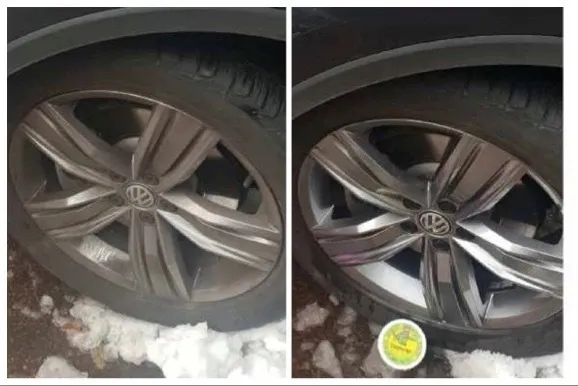 付属のスポンジを水で濡らして洗剤の表面を2~3回軽く撫で、少量の洗剤をスポンジに取ります。泡立つくらいが適量です。あとは水で流して乾いた布で水分を拭き取ります。するとまるで新品のような輝きを取り戻します。