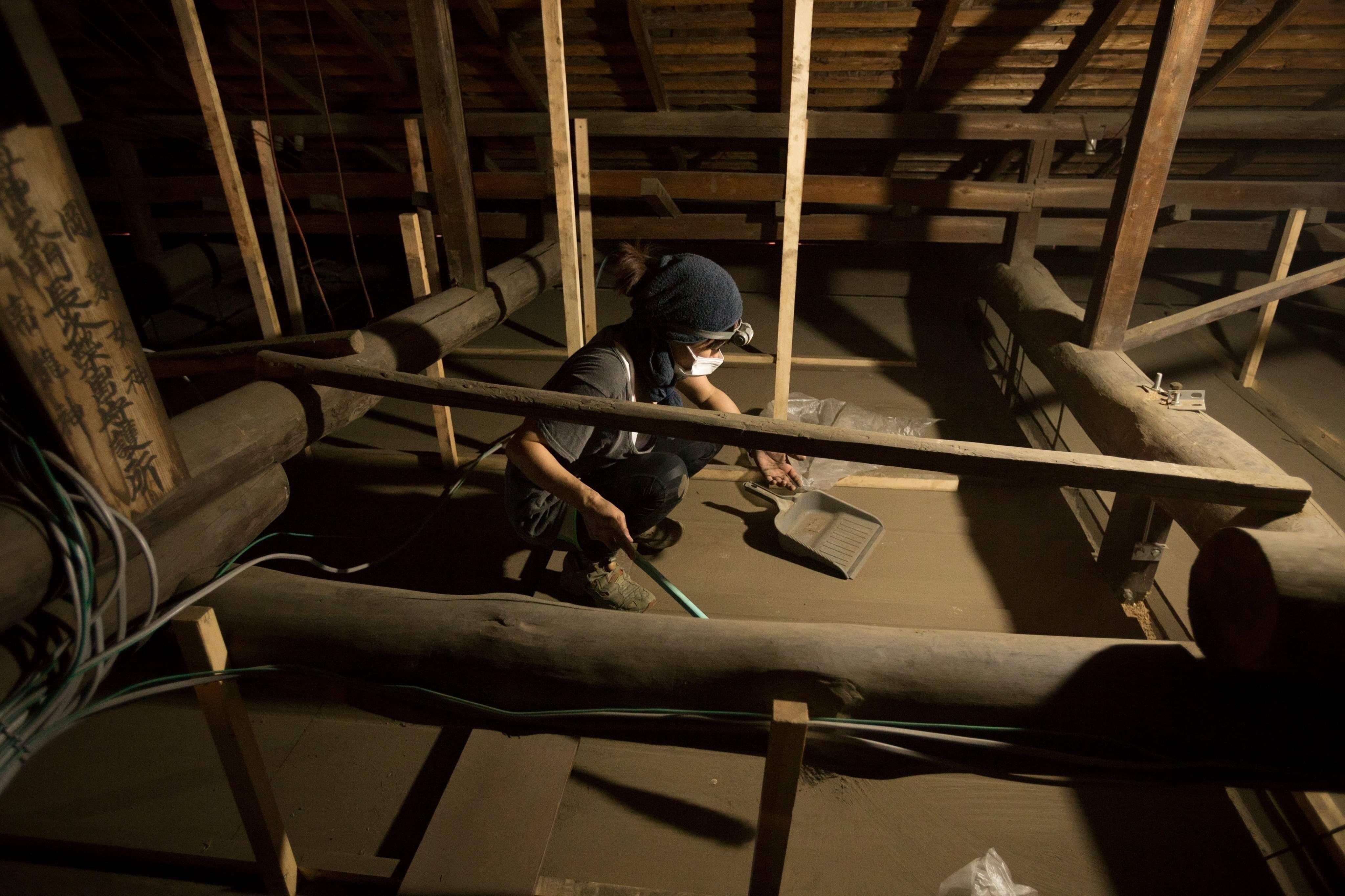▲屋根裏にたまった埃を大掃除