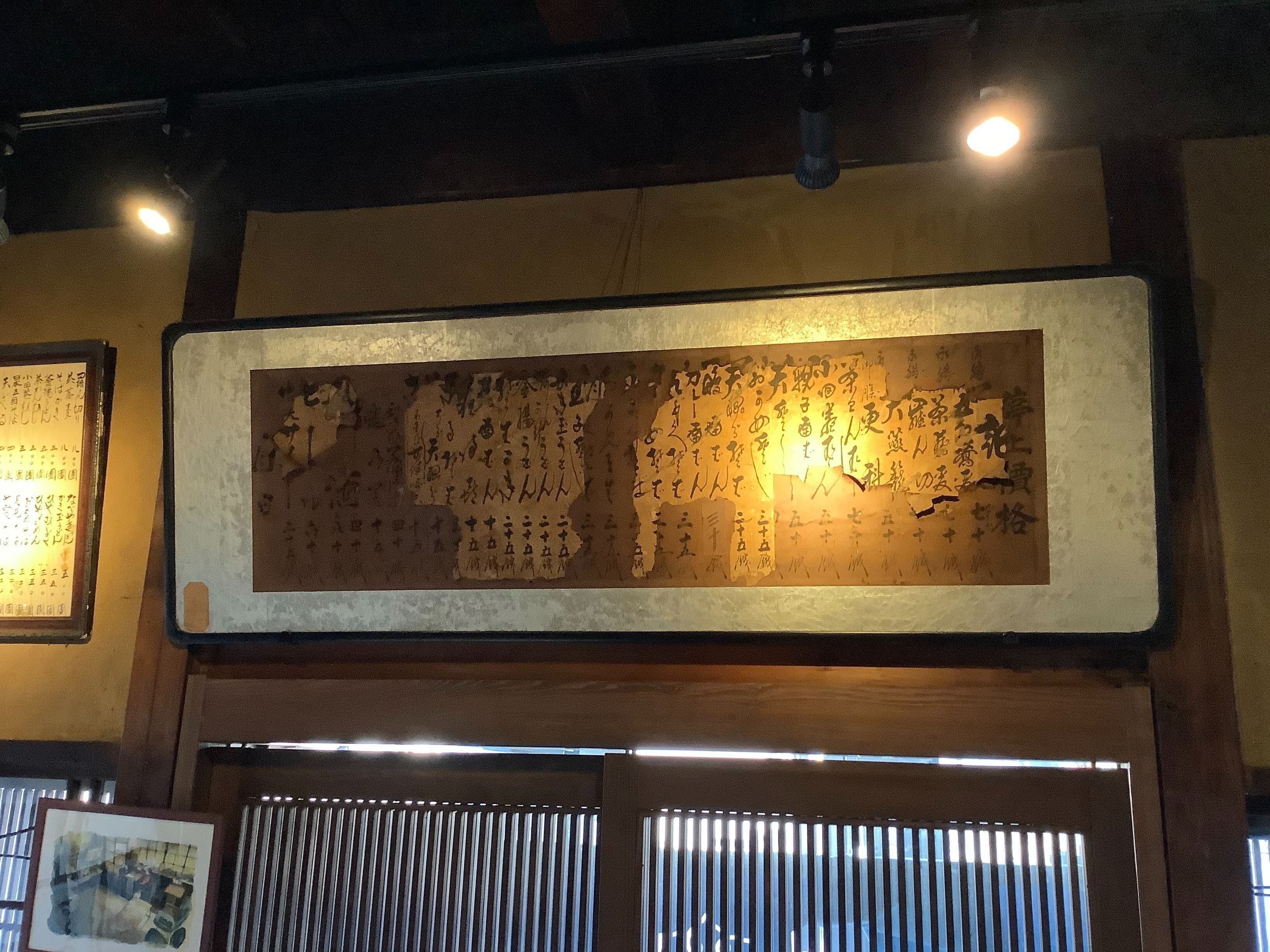 ▲今でも、店内にはそば屋時代の値段表が残っています