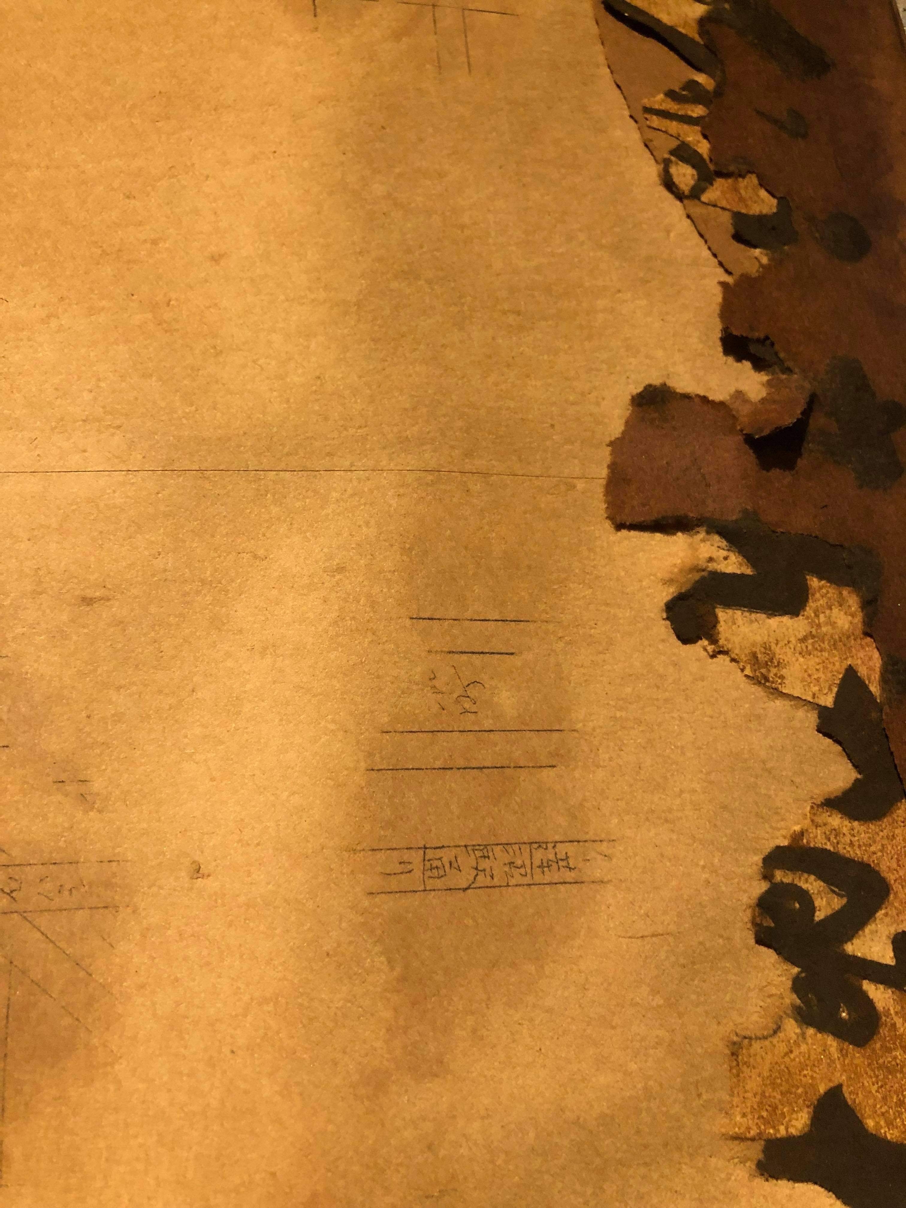 おそらく、古くて弱くなっている紙が湿気で重さに耐えれなくなりこのような状態になったのではないかと思います。