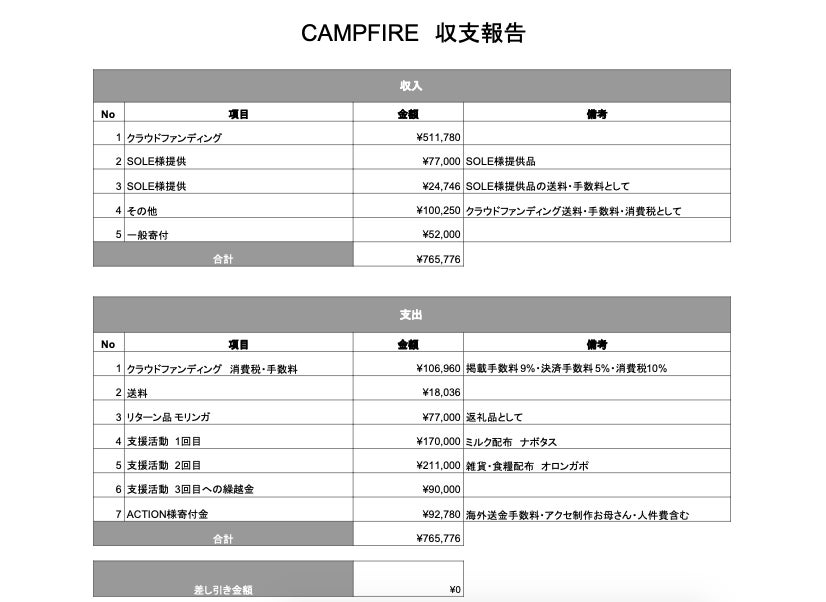 改めてご報告させていただきます。尚、ご支援いただいた皆様へ個別にもお送りさせていただきます。