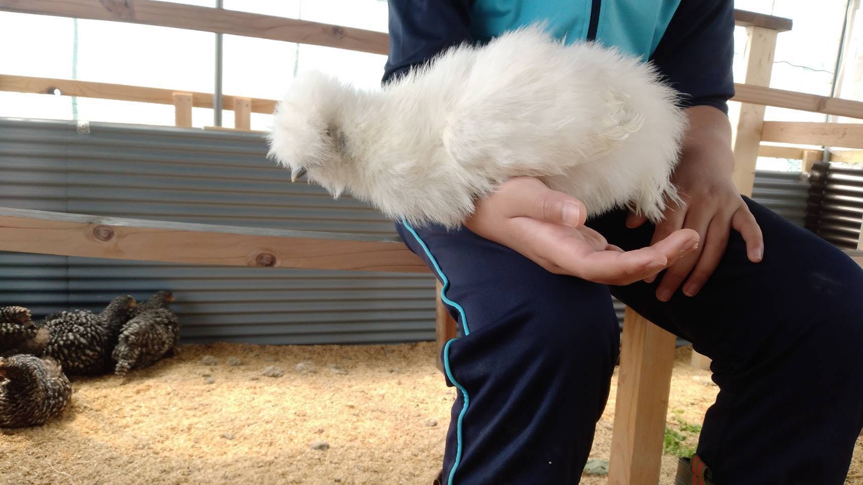 慣れてくるとごらんの通り!鶏🐓さんを抱っこして遊べます!