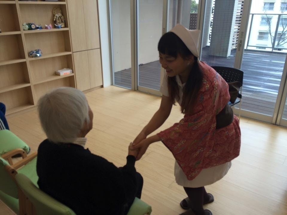 仕事では社会福祉法人特別養護老人ホームにて車椅子や寝たきりの高齢者を看取りまでケアに取り組んでいます。