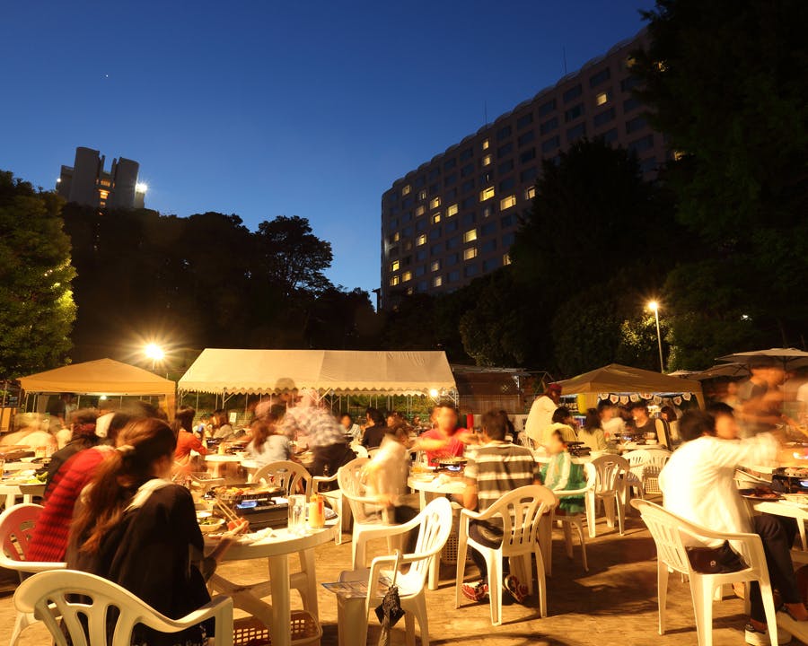 そこはまさに都会のオアシス。夜空と森に囲まれたビアガーデンで飲むビールは格別です。
