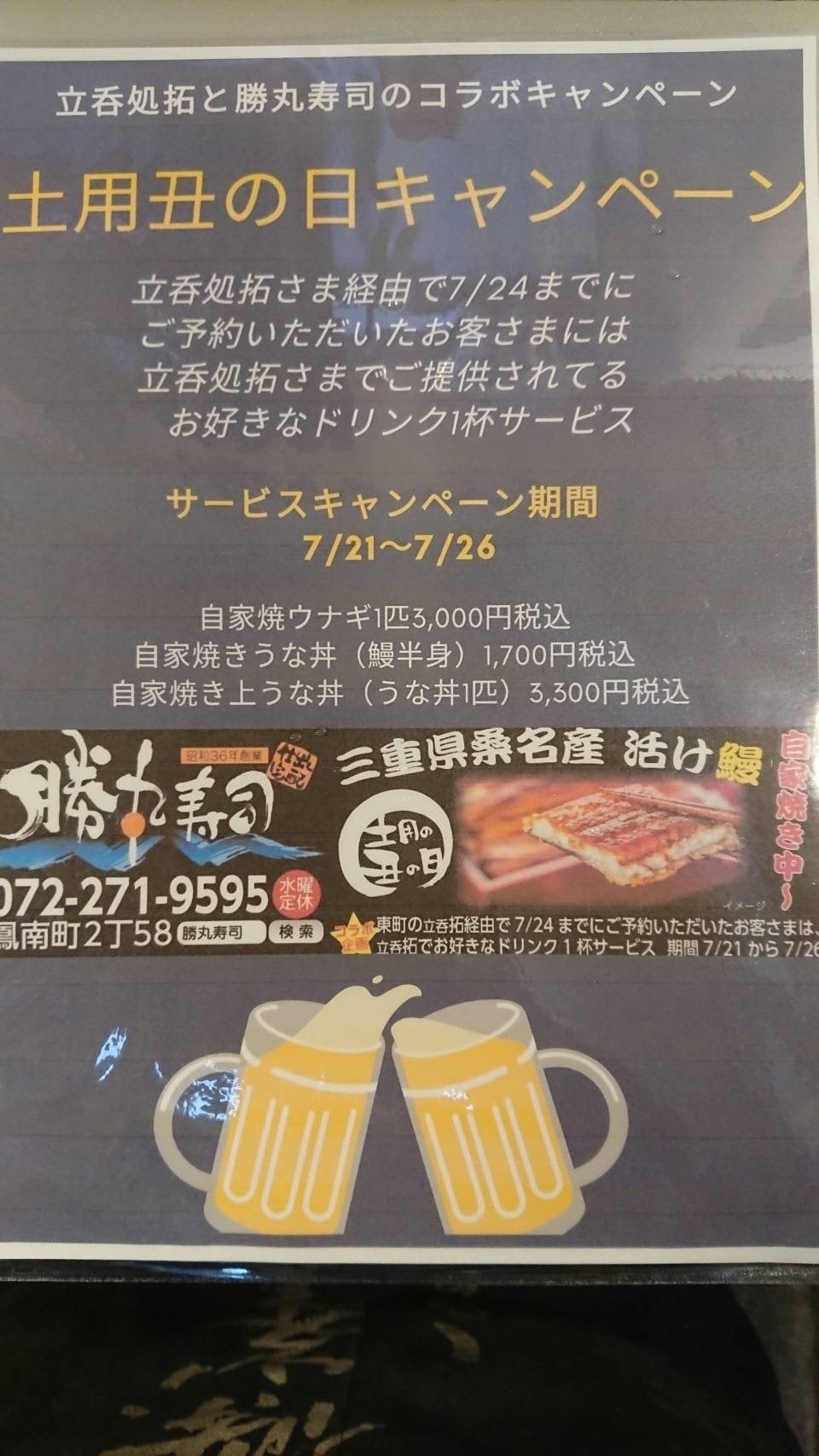 2020/06/23 14:31いつもありがとうございます。残りクラウドファンディングも8日間となりました。右も左もわからない中から、クラウドファンディングを始めて、現在50名ほど支援していただいております。準備ができましたら、順にリターンを送りますので、今しばらくお待ち下さいませ。近々のキャンペーンとしては、近隣店舗の勝丸寿司さんとコラボ土用の丑の日のうなぎ丼のご注文を立呑処拓からすれば、なんでも1杯当店のドリンクをサービスさせていただきます!去年食べましたが、めちゃくちゃ旨いです!問い合わせは、拓まで。 もっと見る
