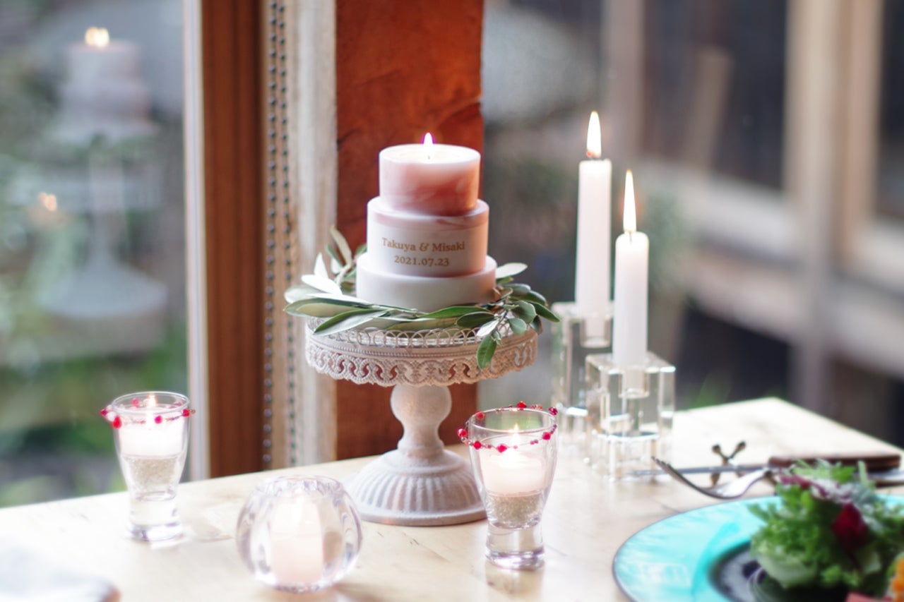 結婚式でしか見ることの出来ないウェディングケーキをキャンドルのデザインにしました。