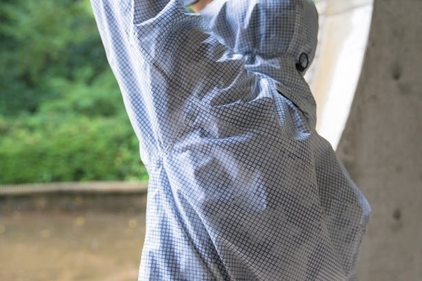 まず、人間工学に基づく計算されたカッティングにより、肘や腕の曲げ伸ばしで感じるツッパリ感は伸びない生地で仕上げてあるにもかかわらずストレスを感じず楽に動けるようになっています。長年アウトドアウェアのデザインを手がけ、身体を知り尽くしたデザイナーが「本当に動きやすい」を追求した結果です。