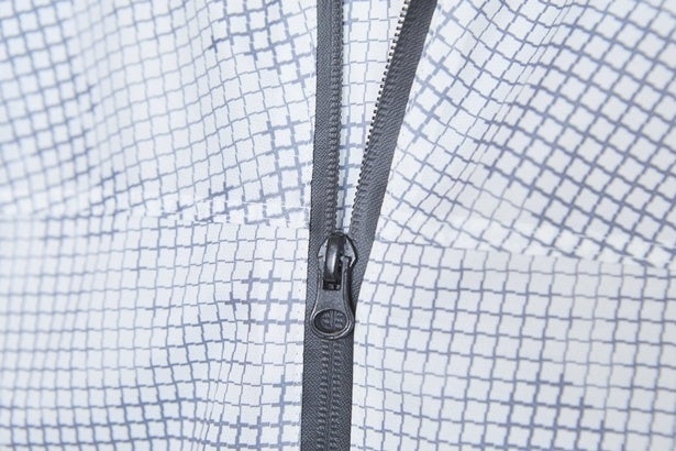 フロントジッパーは止水ファスナー仕様。防水性とデザイン性を両立しています。