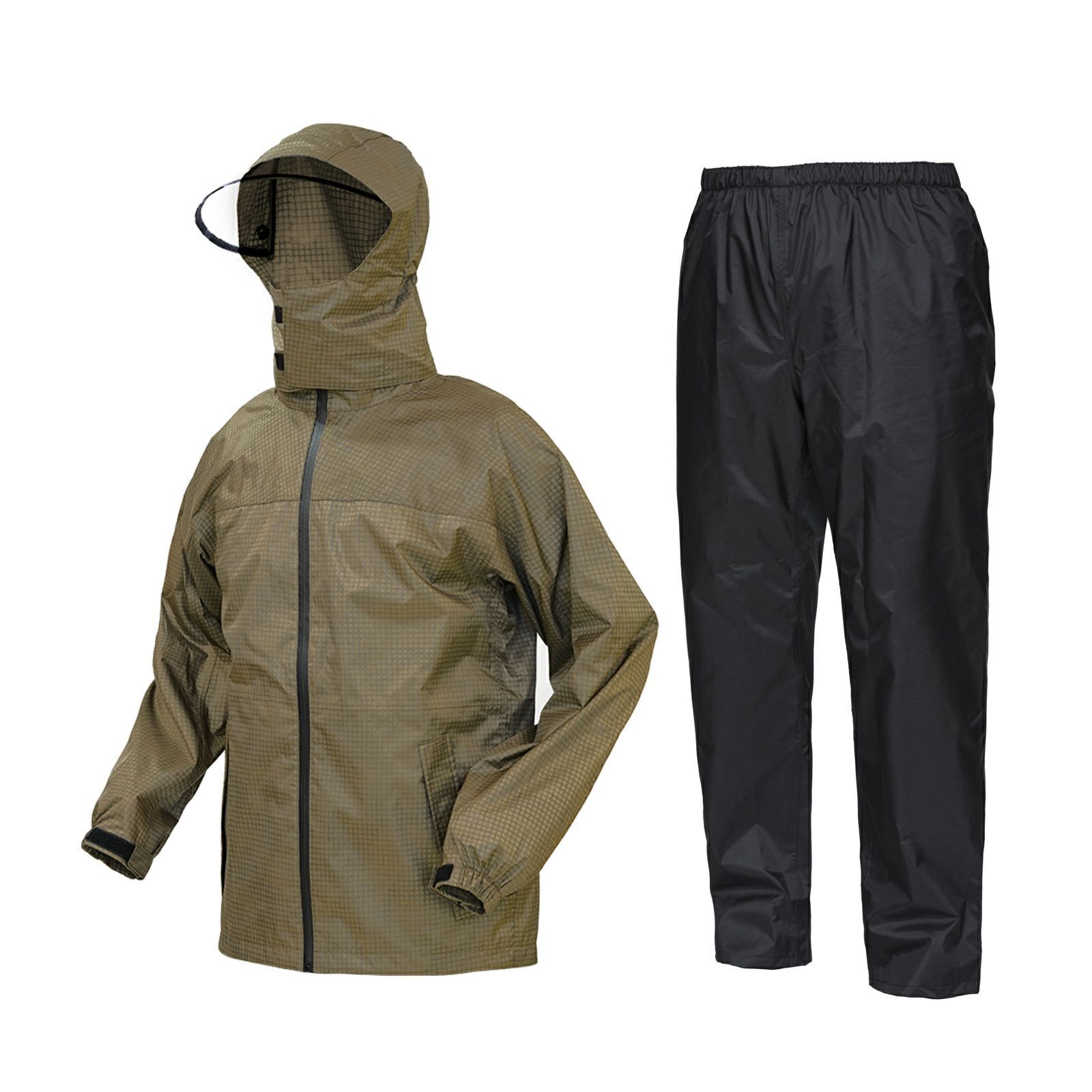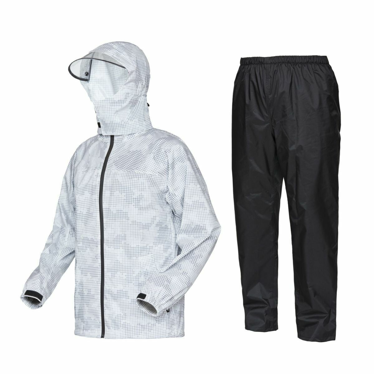 ジャケット・パンツの上下セット。専用のレインバイザーが付属でついています。