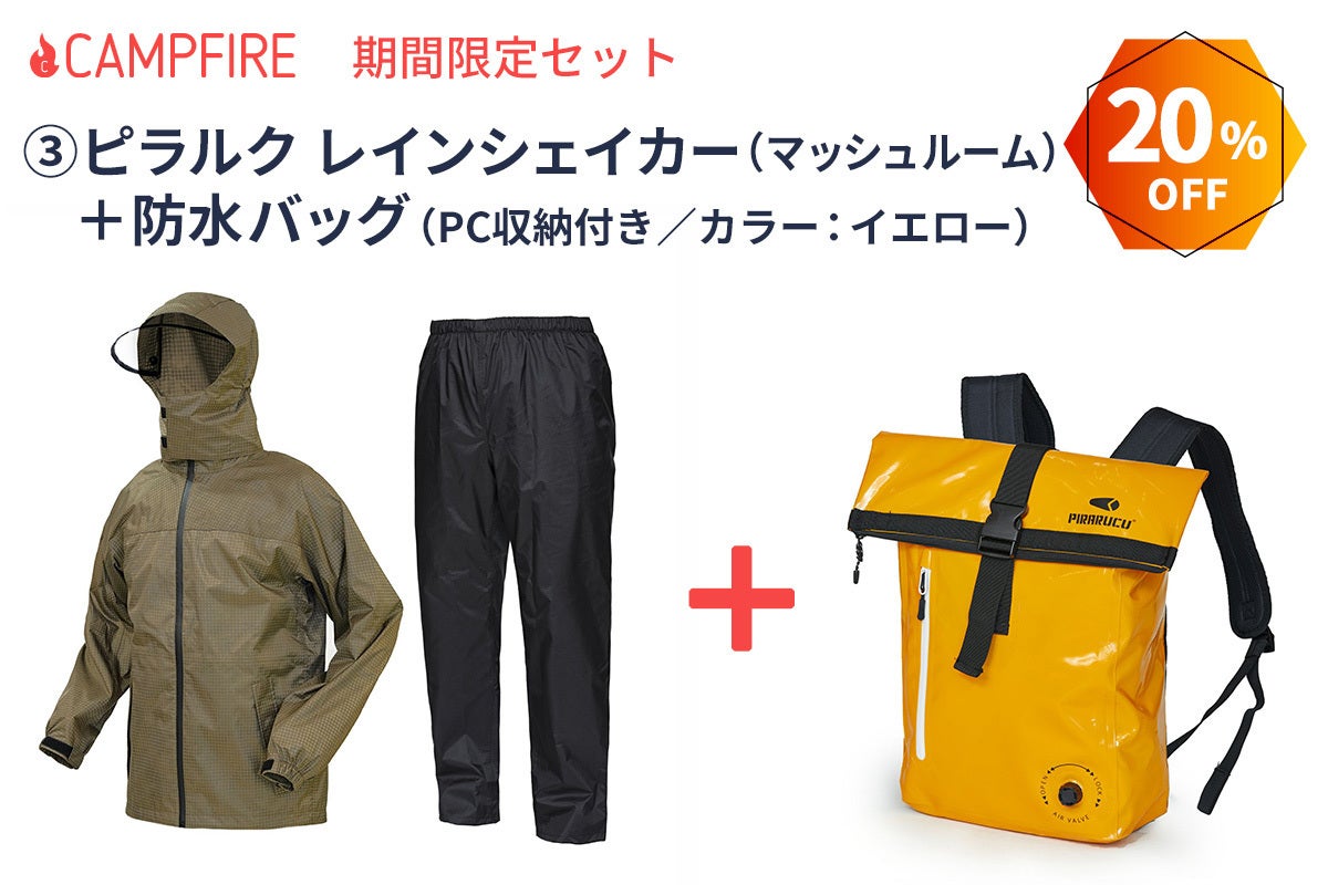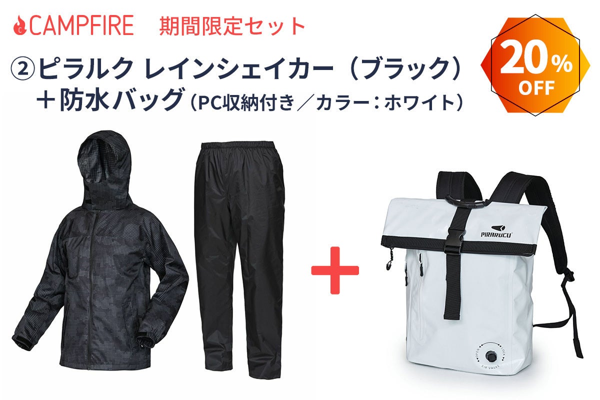 今回は、当時のプロジェクトにて、ご支援者の声より「通勤用に、防水性能が高いバッグ(背中に背負っているバッグ)も合わせて欲しかった」という声をいただき、まさにこちらの写真で使用した防水バッグ『GP-010 バックパック 20L』を、CAMPFIRE限定セットとして実現する運びといたしました!