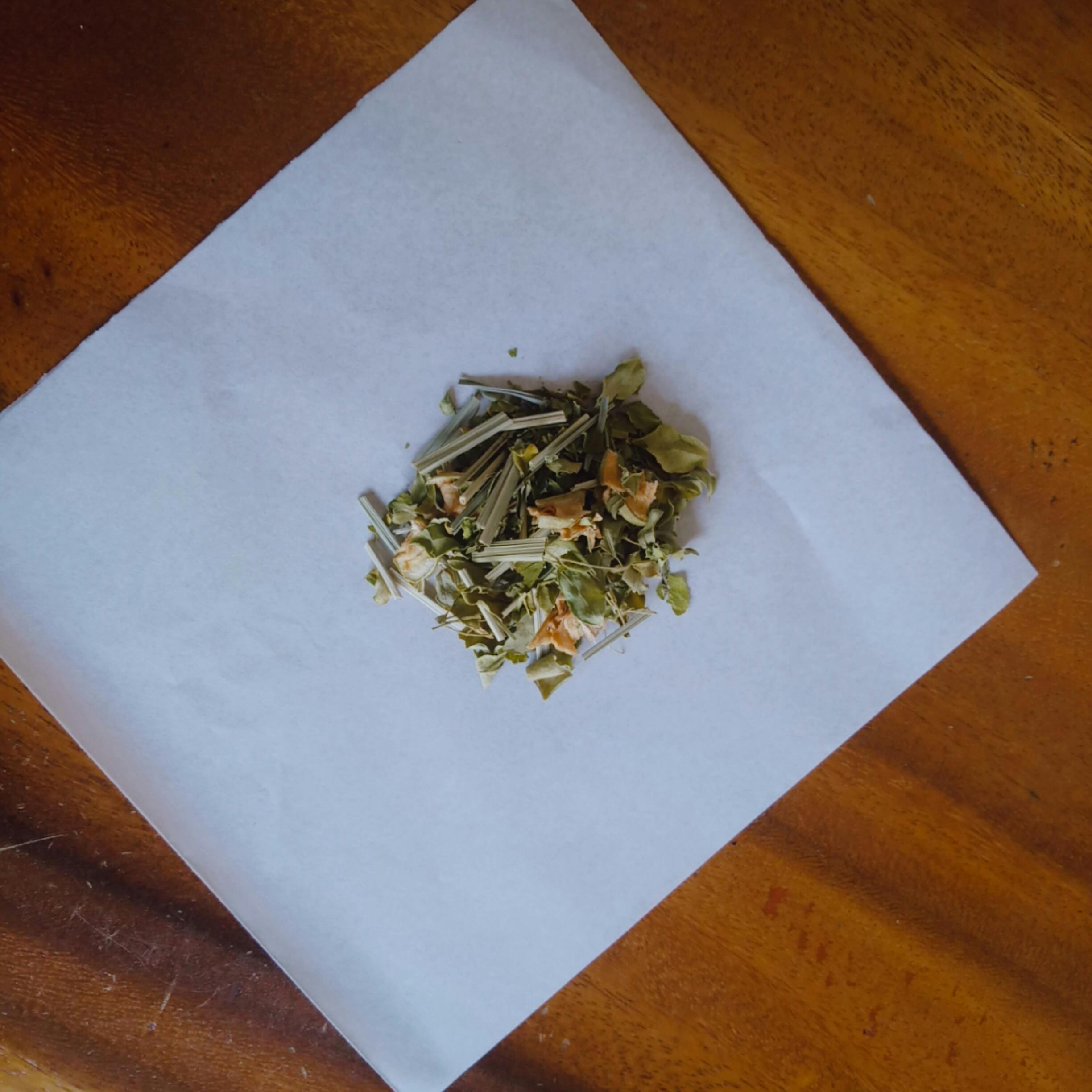 原料:モリンガ、こぶみかんの葉、千日紅、カルダモン