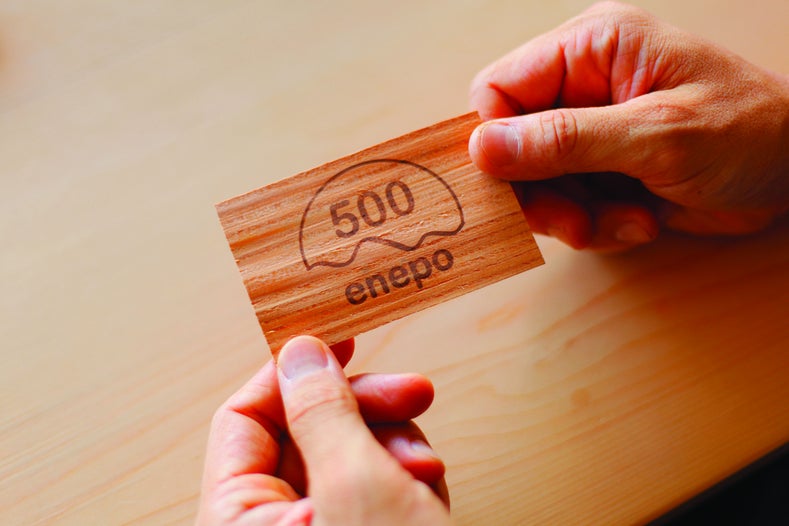 スギやヒノキといった森林保護に向け、市内9カ所で間伐材を集める木の駅を中心に、飛騨・高山における間伐材の活用・流通を通じた自然エネルギー循環システム「木の駅プロジェクト」を立ち上げているNPO法人です。活動に参加した人は、集めた間伐材の対価として、地域通貨「eNePo」を手にすることができます。