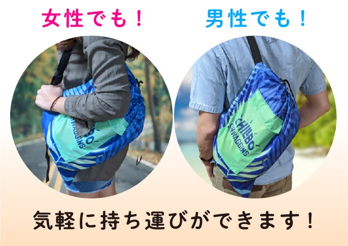 座り心地がとても良いので、レジャーシートのように2人で座ったり、ハンモックのように寝たりすることもできます。