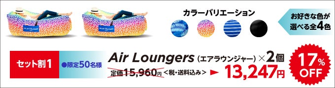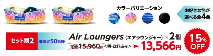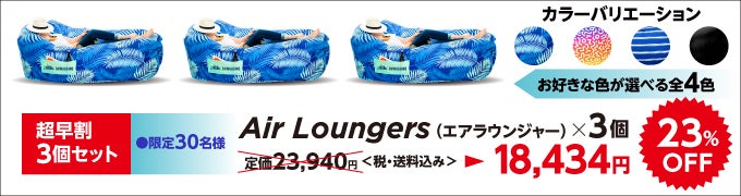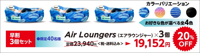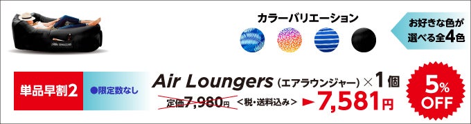 「Air Loungers(エアラウンジャー)」はアウトドアやレジャーをより充実に過ごせる、新感覚ポータブルソファー。野外でさっと取り出して使うことができる優れものです。アメリカのアウトドアメーカー「CHILLBO」が手掛けました。