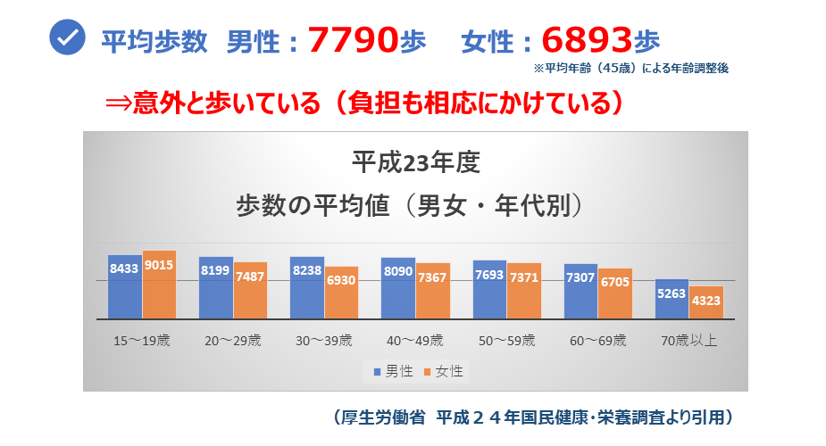 足には大きな負担がかかっている(平均歩数)