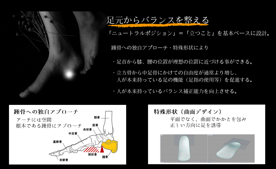 足の骨格を支える構造となっており、バランスの補正を目的としています。