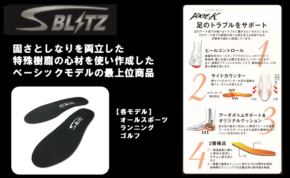 動作移動を行う為に硬さを詳細に調整されたインソールです。